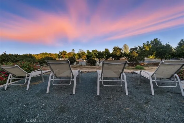 The outdoor oasis includes a saltwater Pebble Tec pool with spa and jumping rock, multiple fire pits, a spacious view deck, and a full outdoor kitchen with luxury grill, pellet smoker, refrigerator, and side burner. Recreational amenities include a multi-use sports court, 5-stall barn, avocado and citrus orchard, full RV hookups, and a second service gate entrance. An additional insulated, climate-controlled 2-car garage near the barn provides extra functionality for hobby or equestrian use.
