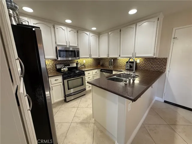 Welcome to your dream home in the coveted Tierra Linda Community! This exquisite end unit with driveway is located on a single loaded street for ample parking. Step inside and be captivated by the light tile flooring that transitions to light laminate flooring, creating an open, airy atmosphere. vaulted ceilings enhance the spacious living and dining room, while custom paint adds a touch of elegance. The kitchen, a chef’s delight, featuring white cabinets, and stunning dark granite countertops and beautiful backsplash. The Living room is a cozy haven, with gas fireplace to keep you warm on cold days. The backyard has Canyon and tree views, with easy to care for patio. The downstairs half bath has New cabinets, and white/ grey quartz counters, raised glass sink. and a shower behind the door, and access to a great storage area. Upstairs, light laminate flooring continues in an enormous loft that looks over the downstairs, can be an office, or playroom, The primary suite, is a tranquil retreat. and a spacious walk-in closet. The primary bath is a luxurious haven, featuring a walk-in shower with travertine tile espresso cabinets and raised glass bowl sink and New glass shower doors with black fixtures, whitewash cabinets, white counters. Laundry including washer and dryer in the garage. All homes in community fully re-piped in 2018, and new roofs and paint are coming 2026. Nestled within vibrant Rancho Santa Margarita, voted the safest city in California in 2024, residents enjoy a community pool, nearby hiking and biking trails, and views of Tijeras Creek golf course. City amenities include beautiful parks, swimming pools, a beach club with a lagoon, BBQ and picnic areas, a lake walk, playgrounds, sports fields, tennis, pickleball, basketball, and volleyball courts. Additional features include a dog park, skate park, and hiking and biking trails just steps away. Distinguished schools.