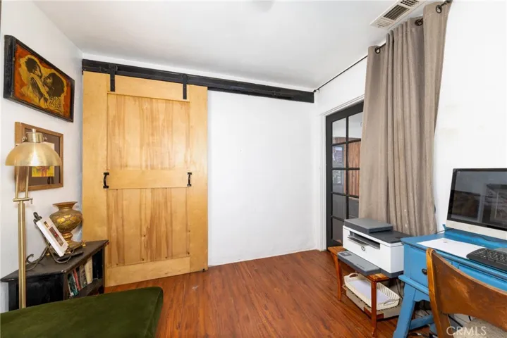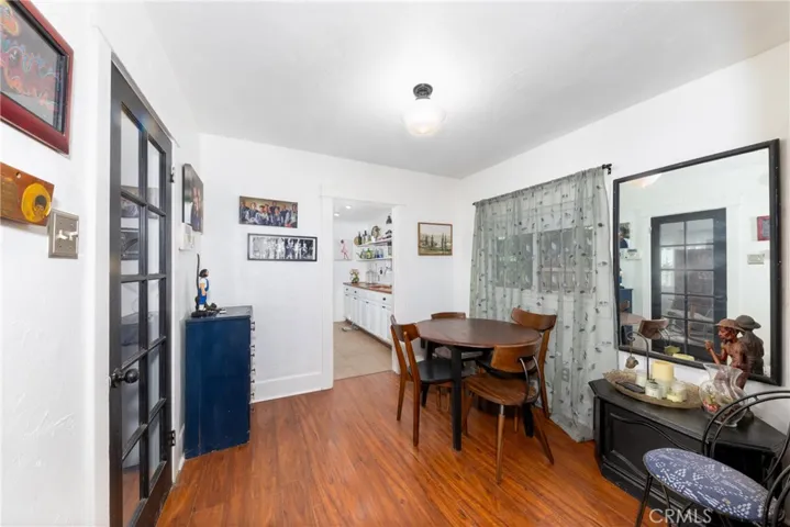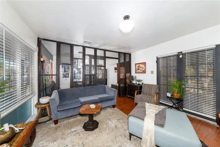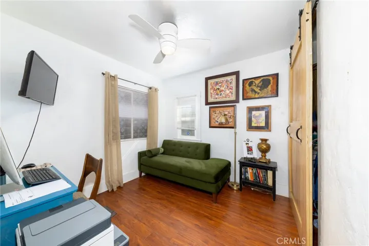 Charming 1923 Vintage Home with Character and Modern Comforts. This beautifully maintained 2-bedrooms, 1-bath vintage home, offers a perfect blend of period details and thoughtful updates. The inviting curb appeal features year-round landscaping with mature plants and flowers, a warm welcome upon arrival. Inside pendant lighting highlights the office/desk set-up upon entry, before entering into a bright living room, bathed with sunlight from the large double-pane picture window and French doors that open to a quaint outdoor patio. A custom glass-framed wall with sliding door, uniquely separates the office area from the living room and sitting TV area, creating a versatile living space. The Kitchen offers upper open shelving, lower cabinetry, a vented hood over stove that blends vintage charm with functionality. Bath includes a vintage vanity, and faucet, including a tub-shower combo. Both bedrooms include new ceiling fans; the front bedroom features a custom barn-door closet, while the spacious second bedroom boasts a walk-in closet. Laundry is located on the service porch with access off the kitchen or directly from the backyard. The fully fenced 7,750 sq. ft. lot is dotted with fruit trees-including almond, pomegranate, and plum and includes a detached one-car garage with a tandem, and upper cabinets for lots of storage. This delightful home combines the character of 1920s architecture with thoughtful modern updates – a rare find for vintage-home enthusiasts. Conveniently located near freeways, shopping, parks.