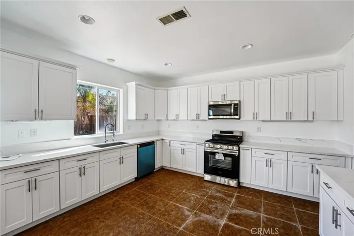 Beautifully updated 2-story home in a quiet West Hemet neighborhood! Built in 2006 with approx. 3,002 sq.ft., this spacious residence features a newly remodeled kitchen with quartz counters, modern cabinets, and stainless appliances. Bright open floor plan with formal living/dining rooms and large family room. Upstairs offers 4 bedrooms, including two master suites, plus a laundry room. Low-maintenance front yard, large backyard with room for a pool. Close to schools, parks, and shopping — move-in ready!