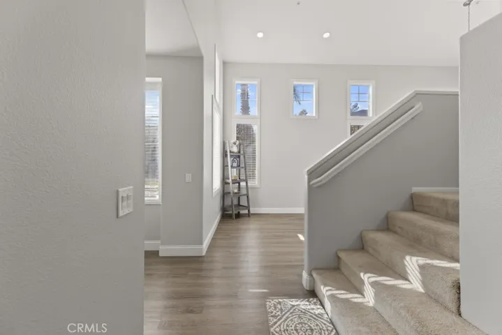 Welcome to this beautiful two-story home located on a desirable corner lot in the sought-after Hunter’s Ridge community of North Fontana. Step inside to soaring high ceilings in the formal living and dining areas, filled with natural light and an inviting open feel. The updated kitchen features sleek quartz countertops, a breakfast bar, and a cozy breakfast nook that opens to the family room with a warm fireplace—a perfect spot to gather and relax. Downstairs also includes a convenient powder room, a large storage closet under the stairs, and an indoor laundry room with direct access to the garage. Upstairs, the primary suite offers a private retreat with an oversized soaking tub, separate step-in shower, dual sinks, and a huge walk-in closet. The two additional bedrooms are generously sized with spacious closets. A loft area provides the flexibility for a kids’ lounge, home office, or potential 4th bedroom. The property is tastefully painted in neutral colors, making it easy to move right in and start enjoying the space. Additional highlights include recessed lighting, ceiling fans, and a recently updated backyard featuring pavers and low-maintenance landscaping—a great space to entertain while keeping water costs down. The property also has a 3 car tandem garage and is located in the Etiwanda School District. Enjoy gorgeous mountain views in the winter months. Conveniently located near top-rated schools, shopping, parks, and freeway access, this home offers both comfort and convenience in one of North Fontana’s most desirable neighborhoods.