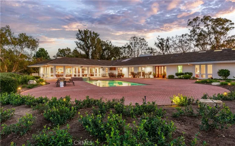 This landmark Crest Road estate is set on approximately 5.5 usable acres, and is one of the very few properties in Rolling Hills offering views in three directions; city lights and coastline to the north, harbor to the east, and ocean and Catalina to the south. Perched above the street with a commanding presence, the home enjoys tremendous curb appeal. A sweeping driveway sets the stage, leading to the elegant porte-cochère, spacious motor court, and a five-car garage. The huge, park-like backyard is truly impressive, showcasing a large pool and spa, expansive lawn, a double bocce ball court, and a barn with riding ring below. Inside, the home exudes a sense of elegance and grandeur, with generous living spaces designed to capture the views. The living room overlooks the rolling front lawn with sweeping vistas of the ocean and Catalina, while the spacious family room opens to the backyard with its dazzling city lights and coastline views beyond. The bedroom wing includes five bedrooms, each with its own full bathroom, providing comfort and privacy for family and guests alike. The oversized primary suite serves as a private retreat, offering a luxurious sense of space and privacy. The separate guest casita enjoys a bedroom, kitchenette and cozy living space. Additional highlights include a screening room, a gym, sauna and a temperature-controlled wine cellar. With its exceptional setting, rare multi-view orientation, and expansive grounds, this property presents a remarkable opportunity to own one of Rolling Hills’ signature estates, ready to enjoy as is or to tailor to your vision. This is the one you’ve been waiting for…