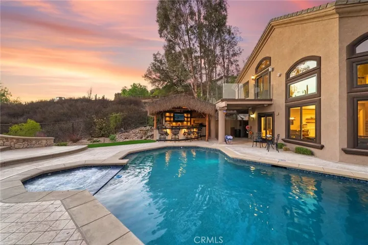 Welcome to your dream home in the highly sought-after Meadowview community—where privacy, elegance, and Southern California charm converge. This stunningly upgraded home offers 5 spacious bedrooms and 4 beautifully appointed bathrooms, perfectly designed for comfort, functionality, and upscale living. From the moment you arrive, you’ll be captivated by the home’s refined curb appeal and meticulous attention to detail. Inside, discover an expansive open-concept layout filled with natural light, high-end finishes, and seamless indoor-outdoor flow—ideal for both everyday living and elevated entertaining. The designer kitchen, complete with premium appliances, custom cabinetry flows seamlessly between the dining and family room. A towering great room and multiple living spaces provide the perfect backdrop for gatherings both intimate and grand. Step outside to your private backyard resort—an entertainer’s paradise. Unwind or host under the stars with a sparkling custom pool, incredible outdoor fireplace, and fully equipped bar and BBQ area. Whether you’re hosting summer soirées or quiet family evenings, this outdoor retreat is truly unmatched.