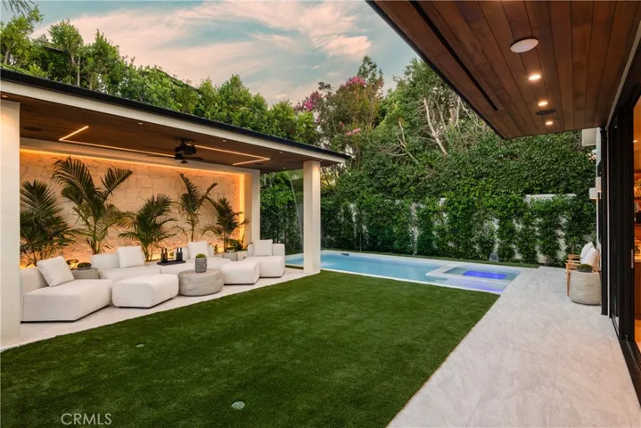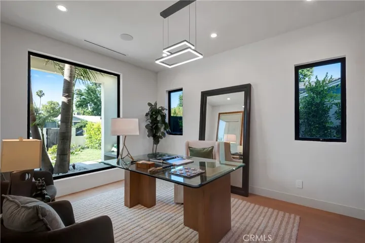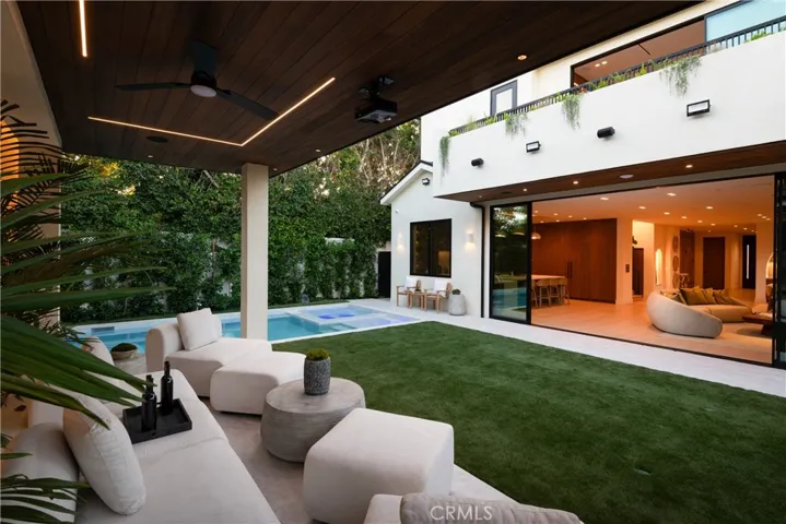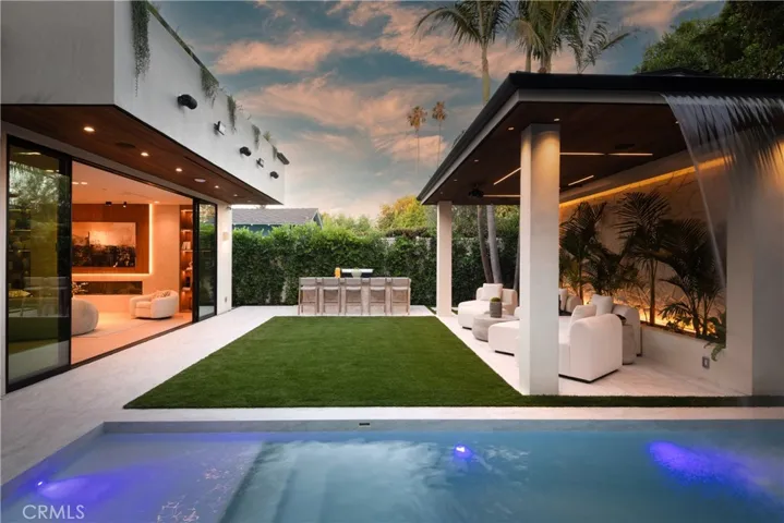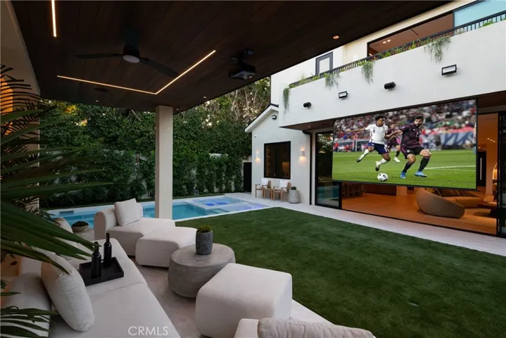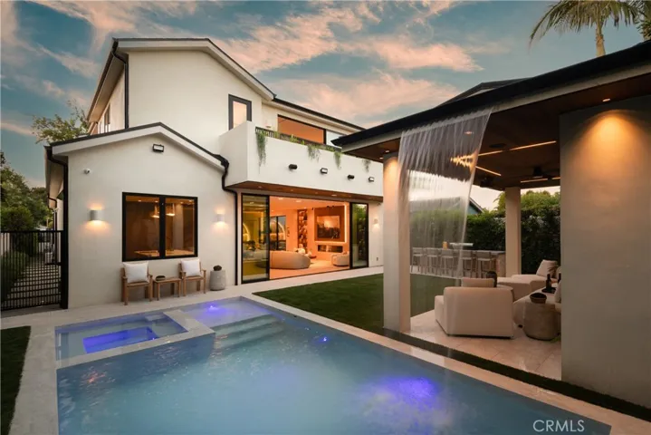 Experience the pinnacle of modern living in this newly constructed organic modern showpiece, where sophistication meets comfort at every turn. Thoughtfully curated with the finest finishes and innovative design elements, this residence offers a seamless blend of elegance, functionality, and style. The open-concept floor plan flows effortlessly from the dining room to the family room, where expansive sliding glass doors open to the backyard. Bathed in natural light, the interiors blur the line between indoor and outdoor living. The gourmet chef’s kitchen is a culinary dream, featuring top-of-the-line appliances, an oversized center island with breakfast bar seating, and a walk-in pantry. A cozy yet stylish theater room provides the perfect setting for family movie nights or entertaining guests. The luxurious primary suite serves as a private retreat, complete with a fireplace, wet bar, custom walk-in closet, and a spacious balcony overlooking serene views. The spa-inspired bathroom offers a soaking tub, oversized walk-in shower, dual vanities, and private balcony access for peaceful morning moments. Step outside to a resort-style backyard oasis showcasing a covered cabana with a waterfall feature, pool and spa, built-in BBQ with bar seating, and an outdoor motorized movie screen with projector—perfect for unforgettable gatherings or relaxing under the stars. Additional highlights include a Control4 smart home system, surround sound throughout, a security camera system, and a prime location near Westfield Fashion Square, Ventura Blvd’s premier dining and shopping, and top-rated private schools. A rare fusion of style, innovation, and comfort—this exceptional home defines the ultimate modern luxury lifestyle.