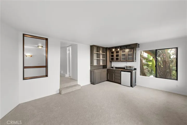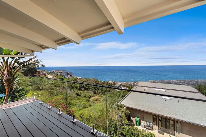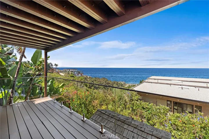 Enjoy spectacular ocean and coastline views from this turnkey home! Everything is pristine – all new wood floors in entry, kitchen, living room and dining room. All new carpet in all other living areas. Working fireplace in the living room which opens to ocean view terrace with walls of glass. New dishwasher and new range in the gourmet kitchen. Spacious bedrooms with plenty of storage. Master bedroom and lowest level rooms open out onto ocean view decks. Two bedrooms and two baths are located on middle level – separate room on third level down with one small bedroom, one bath, small living room and kitchenette. All new full size washer and dryer provided in the indoor laundry area located in bathroom on middle level. Three off-street parking spots in driveway and carport. Close to park, pickle ball and hiking trails. Just minutes to beach and downtown Laguna Beach. Metal railings are being installed at driveway and on along walkway.