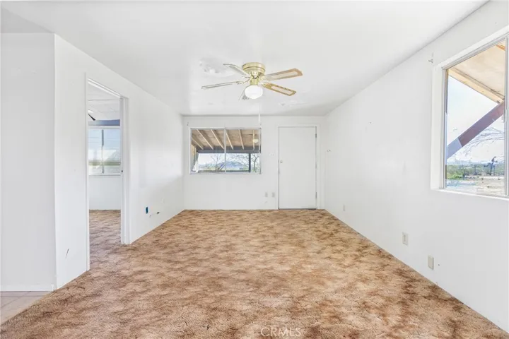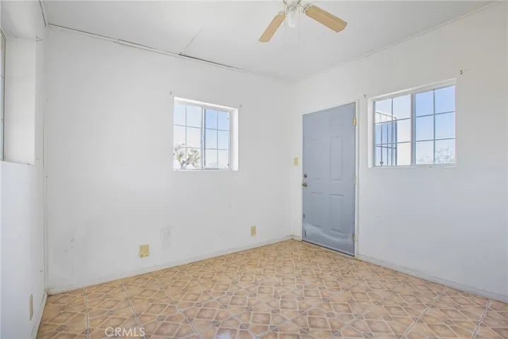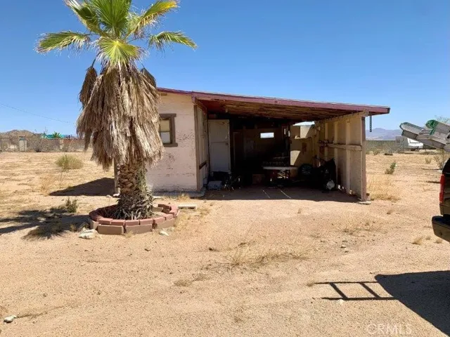 Endless potential on 2.5 acres of flat, usable land! Welcome to 55525 Ornelas Ln in Landers! This 1-bedroom, 1-bath home offers approximately 1,085 sq. ft. of living space (965 sq. ft. per assessor) on a spacious 2.5-acre lot. Features include a large bonus room that could be converted into additional bedrooms, a cozy family room, small kitchen with dining area, enclosed porch, and covered front porch. Detached covered carport includes a small office and storage room. All-electric home with public water—no propane needed. Home needs some updating and repairs but offers great potential as a desert getaway or full-time residence. Zoned HV/SD-RES, allowing for single-family use and potential accessory structures. Conveniently located near Joshua Tree and Yucca Valley.