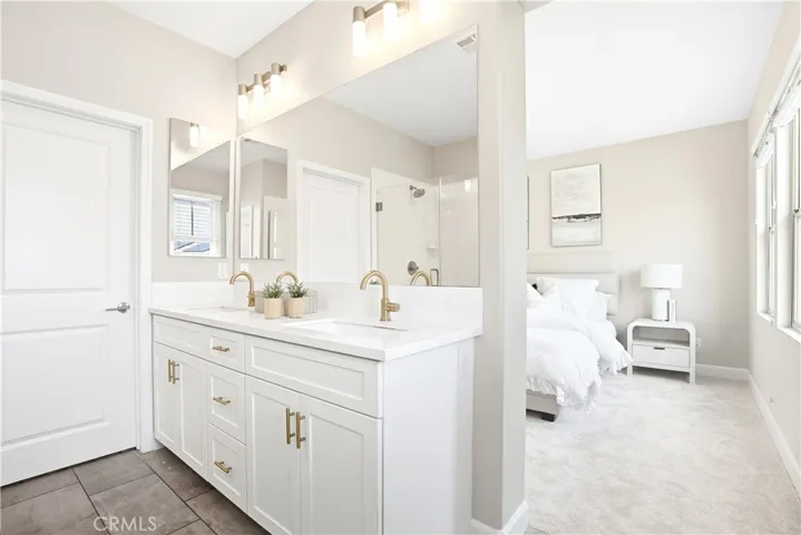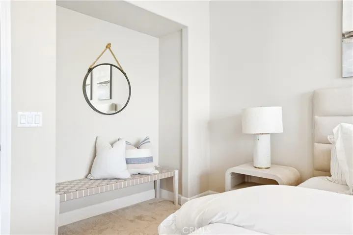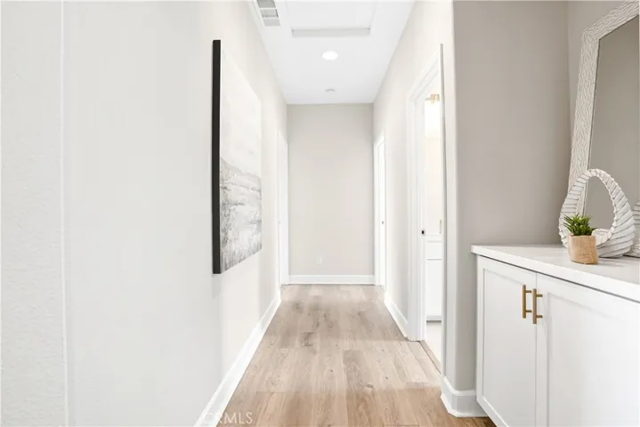 This beautifully upgraded home blends modern design with luxury finishes throughout. From the moment you arrive, you’ll be captivated by the spacious front yard, and oversized covered patio—complete with built-in seating and a cozy firepit, perfect for entertaining or enjoying a quiet evening outdoors. Step inside to discover an open-concept layout featuring elegant vinyl plank flooring, fresh interior paint, plush new carpet, recessed lighting, and upgraded baseboards. The bright and airy living room flows effortlessly into a dining area and a chef-inspired kitchen equipped with stainless steel Energy Star appliances, a gas range with hood and griddle, a self-cleaning convection oven, modern tile backsplash, gorgeous quartz countertops, and a large center island with farmhouse sink and breakfast bar. Upstairs, the luxurious primary suite offers a true retreat with a spacious walk-in closet, beautifully upgraded ensuite bathroom with tiled shower and floor, quartz countertops and dual vanities. Two additional bedrooms, a full guest bathroom with dual sinks, and an upper-level laundry room with added cabinetry provide plenty of space and convenience for daily living. The third-level covered rooftop deck boasts panoramic mountain views and is ideal for BBQs, al fresco dining—with a built-in sink, refrigerator, and counter space—or simply lounging with a built-in TV setup. Additional home features include touchless keypad entry, custom window coverings including wood shutters and blinds, double pane windows, upgraded light fixtures, downstairs framed mirror, modern hardware, direct access 2-car garage with overhead storage and ball rack, and Energy Star features integrated throughout the home. You will also have access to award-winning amenities such as baseball fields, playgrounds, a sports park, the Canyon House, Blue Hummingbird Coffeehouse, The Pond, Lagoon and Lake, Camp Out facility, resort-style pools, the farms, an arcade, state-of-the-art workout gyms, dog park, a zipline, splash pads, biking trails, NEV roads, and tennis and pickleball courts (to name a few). Additionally, it is just 15 minutes from the beach and conveniently located near the 241 freeway