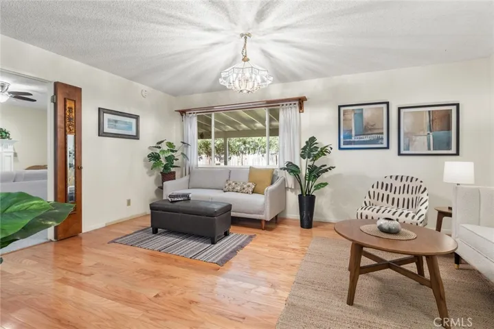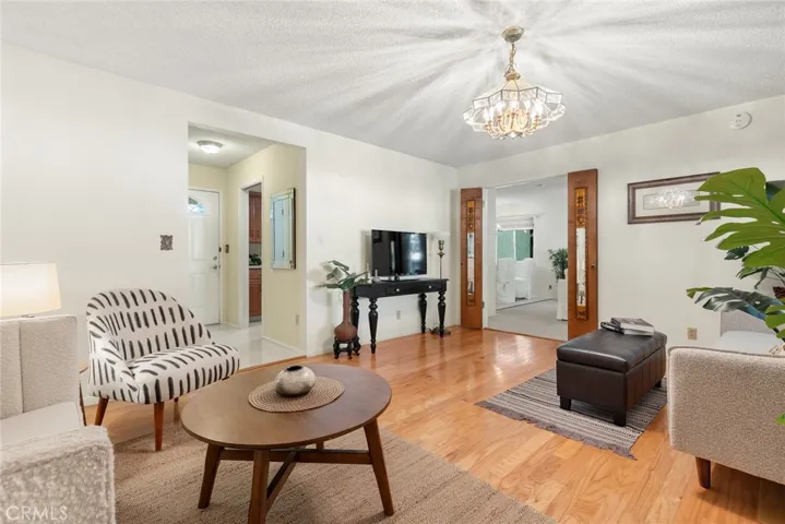 A separate living room offers hardwood flooring and serene backyard views, providing additional space for gathering or quiet evenings at home.