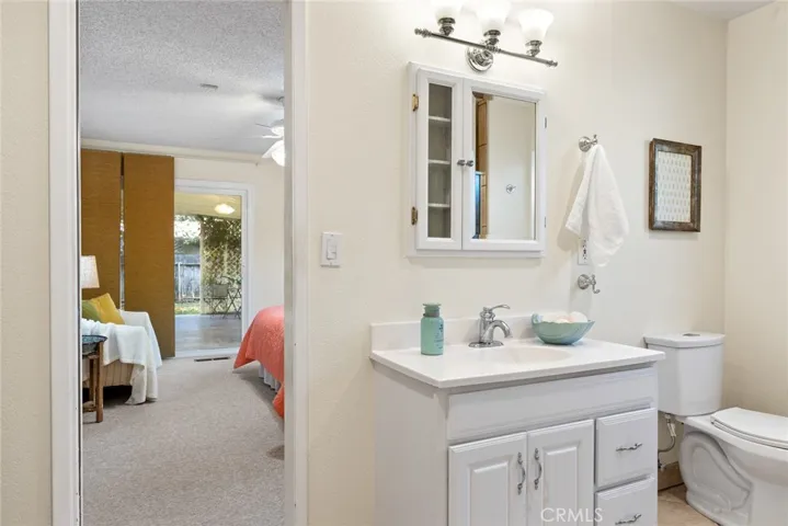 Down the hall, you’ll find two guest bedrooms with original built-in closets and drawers, a full guest bathroom with tub/shower combo, and a generous primary suite with its own bathroom, walk-in shower, and direct access to the patio.