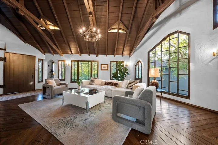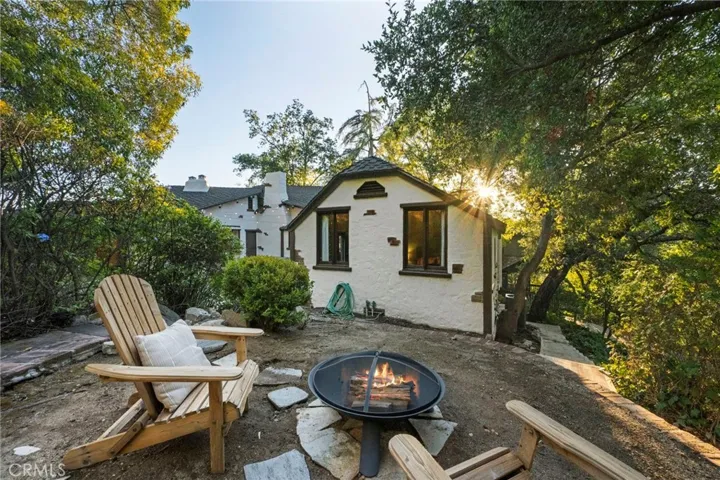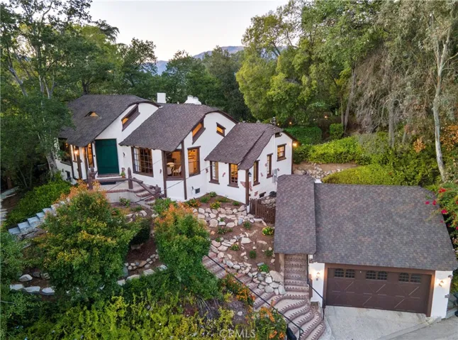 MILLS ACT APPROVED!! Home is now eligible for significant property tax reduction! The MacBride House (1924) — A rare 3-bedroom, 2-bathroom, 1,552-square-foot Storybook Tudor tucked into the trees of Glendale’s Verdugo Woodlands, revived through a meticulous two-year restoration that brought back its original soul while introducing modern comfort. Approved for the Mills Act, this home offers not only a connection to Glendale’s architectural heritage but also significant long-term property-tax savings. Built by an English craftsman who once worked for early Hollywood film studios, this home feels like it was lifted straight from Disney’s Snow White, with whimsical rooflines, arched doorways, and hand-carved details that radiate storybook magic. Inside, vaulted open-beam ceilings and leaded-glass windows fill the grand living hall with soft light that glows across refinished wood floors. The clinker-brick inglenook fireplace, flanked by original hand-carved benches, stands as the heart of the home and a masterpiece of 1920s design. The kitchen and baths have been restored with an artist’s restraint, new time period inspired wallpaper, reglazed sinks, new distressed vintage flooring in bathrooms and kitchen and new classic fixtures chosen in a way to preserve the home’s authenticity. Behind the beauty, every system has been thoughtfully modernized, including new copper plumbing, updated electrical, dual-zone HVAC, and an EV-ready two-car garage with a finished attic loft perfect for a creative studio or private retreat. The 10,226-square-foot lot unfolds into a private paradise of meandering garden paths, intimate patios, and mountain views that make you feel completely tucked away from the world while still only five minutes from the conveniences of modern life. Even the back staircase carries a homage of Glendale’s story, built from old railroad ties that reflect what once supported the trolley network that brought residents to this hillside haven a century ago. The Glendale Historical Commission has already met and formally recommended the home for Mills Act approval, with final City Council confirmation expected soon, offering the next owner both the pride of preservation and the potential for long-term property tax savings. The MacBride House is more than a home; it is a living story; a fairytale refuge that celebrates craftsmanship, imagination, and the timeless beauty that first made Glendale one of California’s most enchanting communities.
