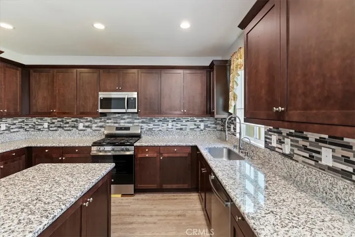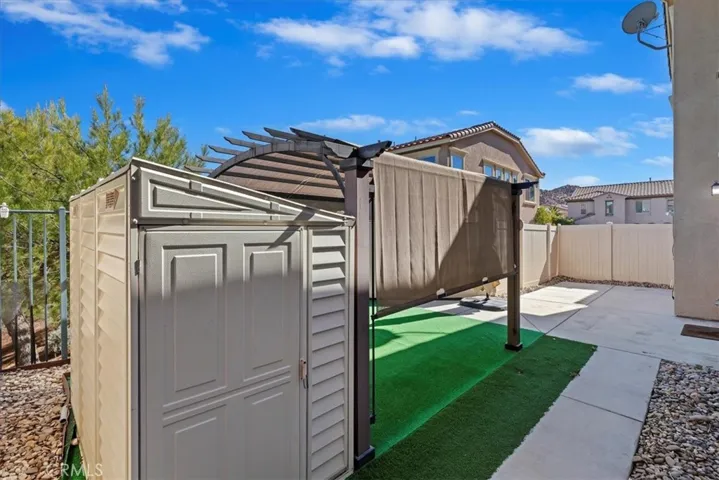Welcome Home! 24228 Lilac Ln is a beautifully maintained 3-bedroom, 2.5-bath home offering 2,064 sq ft of comfortable living in the sought-after Westridge gated community of Lake Elsinore. The open layout features a bright living area, kitchen with granite countertops, stainless-steel appliances, and a large center island, along with upgraded flooring throughout the main level. Upstairs includes a flexible loft, a spacious primary suite with walk-in closet and dual sinks, plus a convenient laundry room. Energy-efficient upgrades include owned solar panels, a tankless water heater, and an electric-vehicle charger for modern, eco-friendly living. The private backyard with concrete patio and pergola is ideal for family gatherings or quiet evenings outdoors. Westridge residents enjoy a community pool, spa, playground, and walking paths, all close to shopping, schools, and freeway access. A warm, welcoming home that blends comfort, efficiency, and Southern California lifestyle beautifully.