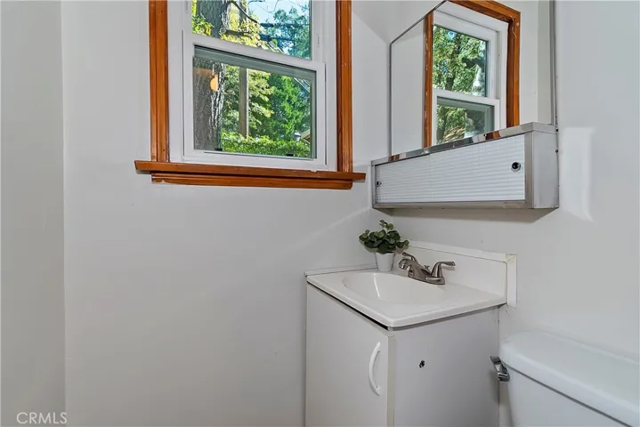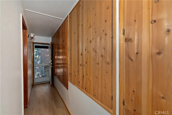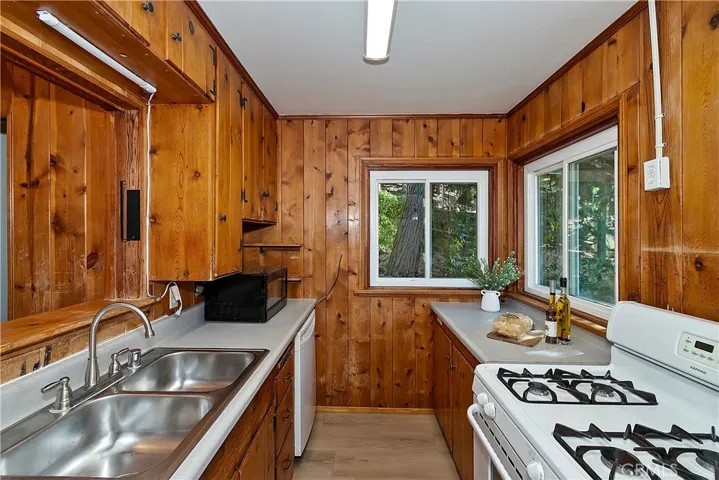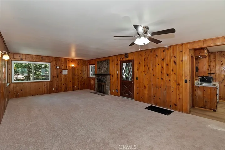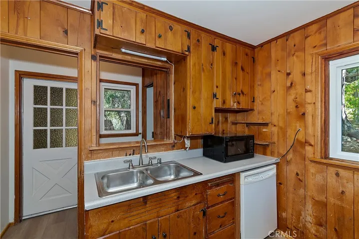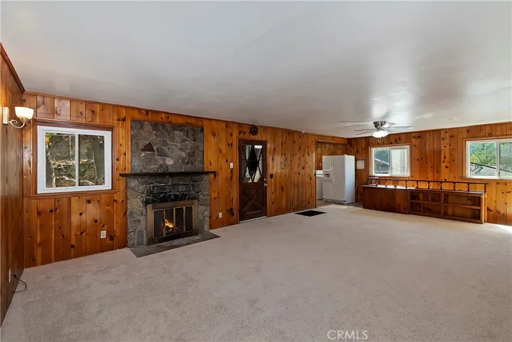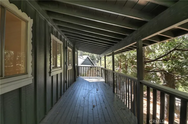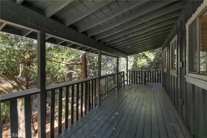 Adorable cabin in the woods that checks all the boxes including a garage and walking distance to the lake! Offering an abundance of natural light with custom features from an era gone by such as original knotty pine interior walls that fill the space with charm and character. A stone fireplace anchors the large living area and natural gas heating warms the rest of the home. Another amazing feature is the large gated usable yard with two entertaining decks plus a flat cement porch outside your front door. If you love to garden, there is a large, terraced space on one side of the house with good sun to grow flowers or food. In front of the home is another area that is ready to make your own with flowers, ground cover like vinca flowers, mulch, or just more space to enjoy. You will love the detached garage to tinker around or park your vehicle with a door that opens to the yard and walk to the front door. There is more parking space in front of the garage and in front of the home. PLUS, a large storage room underneath the garage that can serve as a man cave, workshop, craft room, gym, or maybe extra guest room since it has a door and windows. The home is freshly painted inside and out with brand-new carpet and vinyl flooring throughout. A half bath is conveniently located off the kitchen and full bath downstairs with your two bedrooms and laundry room. A wall of storage space with beautiful wood doors lines the hallway. There is also an exit door to access your lower deck and the yard. If you have pets, they will absolutely love the huge yard to run and play with peace of mind for you with the fence. The cool breeze in the afternoon is perfection sitting outside enjoying the mountain life. Come and see the cutest mountain getaway for those weekends where you just need to unplug or stay for a lifetime with all the amenities you need to enjoy your peaceful cabin. Located a short walk to Lake Gregory where in summer you can spend your days swimming, kayaking, paddleboarding, hiking, or fishing, then relax at nearby parks including a water park, skate park, dog parks and enjoy the convenience of a brand-new grocery store just down the road.