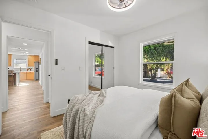 Welcome to the ultimate turnkey experience! This stunning, fully-gated modern home on a sprawling corner lot in Van Nuys offers unparalleled privacy and function perfect for a first-time buyer or growing family. Step into a bright, open-concept layout where the fully remodeled kitchen is the show-stopping heart of the home. It features a gleaming quartz waterfall island, top-of-the-line stainless steel appliances, and custom cabinetry with smart built-in USB/outlets making entertaining effortless. A formal dining area flows seamlessly from the kitchen. The versatile floor plan boasts a spacious primary suite with a luxurious en suite bath, plus two additional, well-sized bedrooms. Both bathrooms have been completely renovated for a spa-like feel. Enjoy a clean, contemporary aesthetic with new waterproof vinyl flooring, recessed lighting, and modern fans throughout. This home adapts to your life. A versatile bonus room can easily serve as a studio, playroom or fourth bedroom, complemented by a dedicated home office for remote work. The expansive, private backyard is a tranquil canvas with mature trees, ideal for al fresco dining under thoughtful dusk-to-dawn lighting. Multiple lounge areas throughout the front and back yard for maximum potential of this expansive corner lot. Every major system has been updated for comfort and efficiency: newer central HVAC (w/ Nest), a new 200-AMP electrical panel, updated plumbing, newer shingle roof, and double-pane tinted windows. Instant curb appeal is provided by the freshly painted exterior, newly paved driveway, and modern garage door. The garage is already updated with new drywall, paint, sensor lights, and an epoxy floor, making it perfectly poised for an easy ADU conversion. With the new 200 amp electrical panel and plumbing in place, you can quickly unlock potential rental income or create a private guesthouse. Parking is plentiful with a fully-gated driveway. Don’t miss this opportunity to own a completely renovated Van Nuys gem!