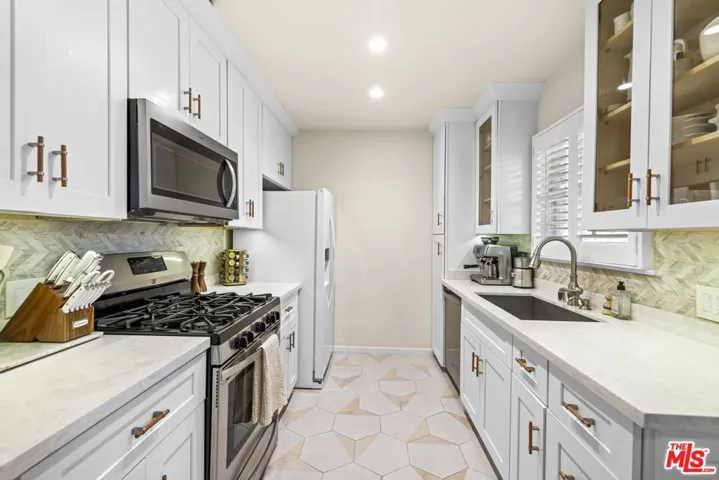 Welcome to this beautifully reimagined condo in the highly sought-after North of Wilshire area, zoned for the coveted Roosevelt Elementary School. Offering abundant storage and a private one-car garage with epoxy floors and additional built-in racks, this home truly has it all- just steps from Montana Avenue, the beach, and Santa Monica’s best dining and shopping. Step into the bright, modern living space which features gorgeous wainscoting throughout and flows seamlessly to the dining area and kitchen. The chef’s kitchen comes complete with a new dishwasher, fridge, microwave, and tile flooring- perfect for both peaceful nights in and effortless entertaining. The primary suite is spacious and bright, and the spa-like bathroom has been completely reimagined with elegant marble tiling. Additional upgrades include new light fixtures, interior doors, baseboards, and thoughtful touches such as bedroom wallpaper, a built-in curtain track, and window AC unit. Storage is abundant with a completely restructured front closet featuring custom built-ins and lighting. Experience the ultimate Santa Monica lifestyle – just steps from the beach, Third Street Promenade, Palisades Park, Montana Ave, and top-rated schools – in a condo that seamlessly blends modern updates with coastal charm. Welcome home!