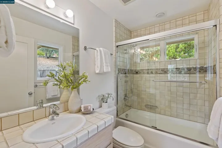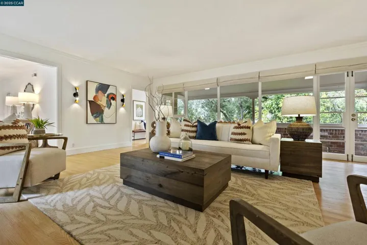 Nestled in the coveted Orinda Estates neighborhood, this beautifully maintained 4-bed, 4.5-bath home offers the perfect blend of privacy, mid-century charm, & modern living. Spanning 3,466 square feet, this light-filled residence features expansive living spaces with picturesque views of the rolling hills and Tilden Park. The heart of the home is the entertainer’s kitchen, which flows into the living and dining areas with easy access to both the front patio and rear lanai. Hardwood floors & large picture windows fill the home with light, creating a warm & inviting atmosphere. The spacious first-floor primary suite is thoughtfully separated, providing an ideal private retreat. A versatile additional room on this level – complete with a built-in Murphy bed, backyard access, & its own updated full bath – is perfect for a home office, guest suite, or flex space. Upstairs, the bedroom wing features two large en-suite bedrooms, each with updated baths, generous closets, & views. A 2-car attached garage leads to a bonus room, which has been used as an artist’s studio by the longtime owner. Outdoors, a low-maintenance backyard oasis awaits—surrounded by mature trees and lush landscaping. Ideally located for both convenience and tranquility, the home offers easy access to BART & Hwy24.