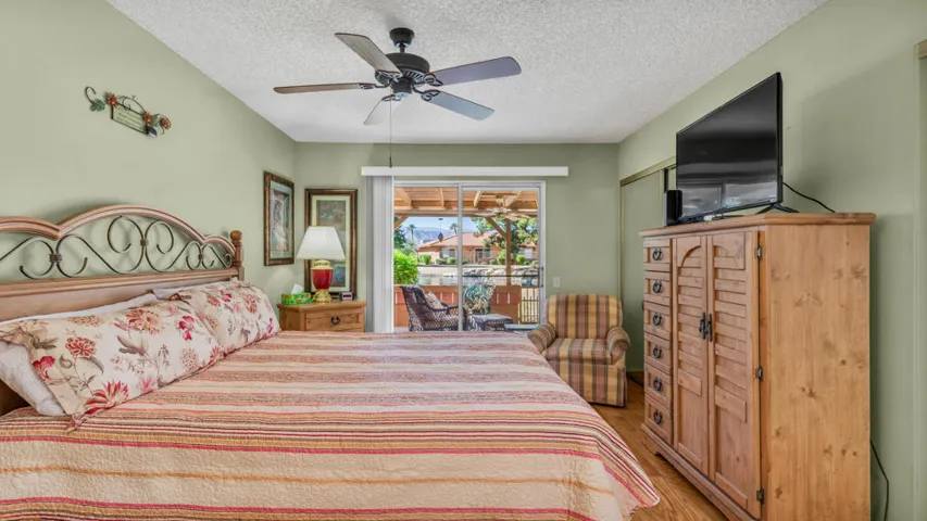 This beautifully updated Mountain and Pond View Condo, located in Indian Palms Country Club, offers a range of appealing features for the discerning buyer. The inviting home showcases white oak flooring, granite countertops in the kitchen, modern cabinetry, and an impressive covered rear patio. Situated on a cul-de-sac, it provides excellent bedroom separation, a lovely enclosed entry patio, a spacious driveway, and a single-car garage. This property is perfect as a full-time residence or an exquisite winter retreat for those looking to escape the harsh winter chill. Has been seasonally rented by return guests for 5+ years that are still interested in future returns!