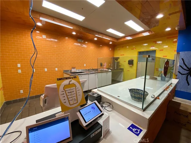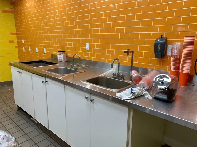 Full kitchen and bar features hand sink, prep sink, dish sink and 3 compartment sink. There is also a new water heater, extensive ethernet cabling, recess and track lighting, cabinets and built in bar. Back area features an office and private restroom. Private secured parking adjacent to the space perfect for loading/unloading and easy access to onsite waste disposal bins.