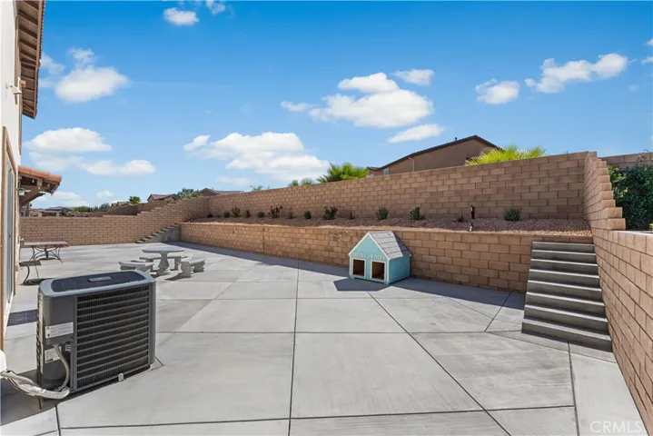 Step outside through the double sliding doors to a low-maintenance backyard featuring custom concrete work, French drains, and a retaining wall lined with plants—already thoughtfully designed and ready to enjoy. The block fencing offers both privacy and a clean, modern look.
