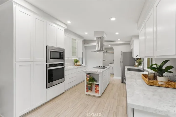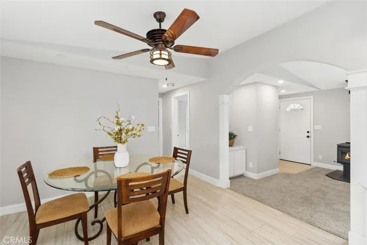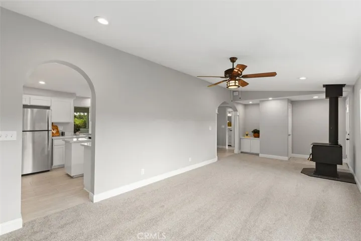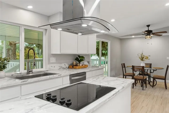 considered by many as the most desired area of the city. Don’t miss this rare opportunity to own a turnkey retreat where comfort, nature and incredible views come together! Location! Location! Set on 2.62 acres of fully fenced land, this beautifully remodeled 3-bedroom, 2-bath home offers 1,440 square feet of stylish living space with thoughtful upgrades throughout. Inside, you’ll find freshly painted interiors, new carpet in the living room and bedrooms, and elegant porcelain tile in the kitchen, dining, and laundry areas. The home features new dual-pane vinyl windows, a newer roof, all-new plumbing, and custom millwork with graceful arches. The kitchen is a true centerpiece, boasting marble countertops, a separate island with new cooktop, custom cabinetry with under-cabinet lighting, rain-glass accents, and all-new Whirlpool stainless steel appliances which include an induction stove. The primary suite includes a custom shower and walk-in closets, while recessed lighting, ceiling fans with individual switches, a cozy mini split for heating and air along with a wood-burning stove add both comfort and charm.