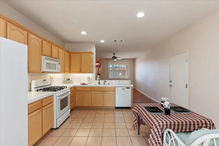 Desert Willows 55+ – Solar Home with Private Garden PatioWelcome to Desert Willows, a gated 55+ community where every day feels like vacation. This charming 2BD/2BA single-level home offers comfort, privacy, and low-maintenance desert living with owned solar for energy efficiency. The open-concept great room centers around a cozy gas fireplace, perfect for cool desert evenings. The bright kitchen features ample storage and opens to the dining nook and back patio for easy indoor-outdoor flow. The spacious primary suite includes a walk-in closet and ensuite bath with dual sinks and a walk-in hydrotherapy tub — your personal spa retreat. Guests will appreciate their own full bath and private bedroom. Step outside to a covered patio surrounded by mature greenery and mountain views, ideal for morning coffee or quiet afternoons. Enjoy Desert Willows’ resort-style amenities: heated pool and spa, clubhouse, fitness center, walking paths, and community events. Experience the best of desert living in a friendly, active community!