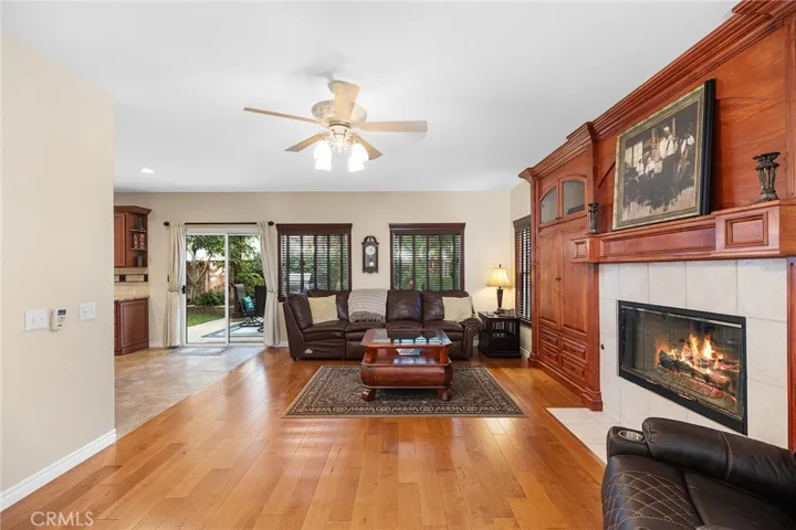 Welcome to this beautifully maintained 4-bedroom, 4-bathroom home with a 3-car garage, tucked away at the end of a quiet cul-de-sac in one of Murrieta’s most peaceful neighborhoods. Lovingly cared for by the original owners, this home blends timeless craftsmanship with thoughtful updates and family-focused comfort. The open living room showcases a stunning two-story Venetian plaster accent wall, tall windows framed with custom woodwork, and a breathtaking $40,000 custom-built second-floor library visible from below. The spacious kitchen features custom cabinetry, granite counters, stainless steel appliances, a Brizo faucet, pull-out spice racks on both sides of the oven and microwave, pull-out storage on both sides of the kitchen sink, a double trash pullout, under-cabinet lighting, and a lighted glass display cabinet. The dining room offers a coffered ceiling and crystal chandelier, while the expansive family room provides flexible space for entertaining or relaxing. Brand new hardwood flooring was installed downstairs in 2023, adding warmth and elegance throughout the main level. The main floor includes a full bathroom and an area that could easily be converted into a bedroom, ideal for guests or multi-generational living. Upstairs, the impressive primary suite spans the entire width of the home, offering space for a sitting area, gym, or office, and features a generous ensuite with dual sinks, a large soaking tub, and a spacious walk-in closet. The large bonus room includes access to a private balcony perfect for morning coffee or evening sunsets, while the third floor serves as a versatile retreat for creativity, recreation, or movie nights with a large projection wall. Enjoy the private enclosed flagstone courtyard with a split-faced stone wall, built-in fountain, timer-controlled lighting, and custom wrought-iron gates at both the courtyard and side entry. The backyard offers a gas BBQ hookup, mature trees, and lush landscaping for a peaceful outdoor retreat. Each floor has its own dedicated A/C unit for comfort and efficiency. Additional highlights include updated plumbing and electrical with 20-amp outlets in the garage and exterior, a very low-payment solar lease, plenty of storage throughout, and no HOA. Close to parks, top schools, and Temecula Wine Country, this home perfectly balances elegance, warmth, and everyday family living.