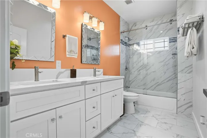 Welcome to 29875 Smugglers Point in the highly sought-after Canyon Lake community. This beautifully designed home offers modern comfort and lake-living luxury. Built in 2019 (1 owner home) this residence features approximately 2,700 square feet of thoughtfully crafted space with four bedrooms and three and a half bathrooms. The open-concept layout seamlessly connects the living, dining, and kitchen areas, creating an inviting atmosphere perfect for both everyday living and entertaining. The kitchen is equipped with contemporary finishes, stainless steel Fridge, oven and dishwasher, waterfall quartz island counter, Calacatta floors throughout, with ample storage and dramatic floor to ceiling black marble fireplace wall with electric insert. The spacious double primary suites includes luxurious ensuite bathrooms and generous walk-in closets, providing a relaxing private retreat. In addition, complete home fire sprinklers for additional safety.