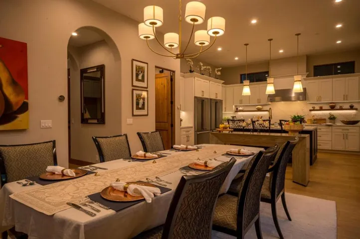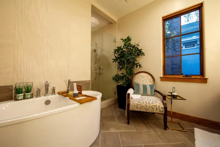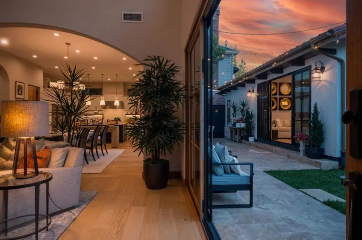 Cutting-Edge Design. Unrivaled Luxury. Ultimate Comfort. Situated on one of Willow Glens most beloved, holiday-lit streets, this brand-new home, just minutes from downtown and steps from Bramhall Park. Featuring 6 bedrooms, 4.5 baths, 4,000 SF of thoughtfully designed living space, a junior ADU and a detached 800 SF ADU ideal for multigenerational living. Enter through a striking 800-lb custom wrought-iron door into a grand double-height foyer soaring 22 feet, with wrap around stairs featuring custom metal railings, wide-plank luxury white oak flooring, a stunning wine cellar enclosed by LED-lit tempered glass panels and custom wood racks. The living room continues the drama: a 22.8-ft vaulted ceiling, wood ceiling beams, 20 dimmable LED downlights, and a custom fireplace clad in 23″x59″ Steel Antracita ceramic tiles. The chefs kitchen impresses with a 48″ AGA Mercury induction range, dual Viking refrigerators, Viking hood, Bianca Fina Revera Quartz backsplash, and 2.5″ solid walnut floating shelves with integrated LED lighting. A Revera Quartz island glows beneath Clark pendants from Visual Comfort Studio. Finished with premium stain-grade interior doors and trim throughout, this residence on renowned Caminos Street embodies the essence of Willow Glen luxury and holiday charm.