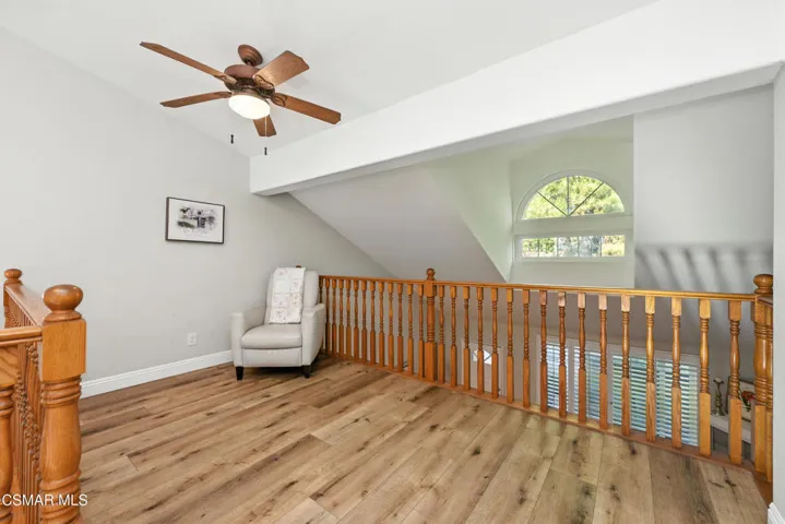 Gorgeous Spanish-Style Townhome in Scenic West Chatsworth! Perched in a serene, Spanish-inspired community near the iconic ”Garden of the Gods” and Stoney Point rock formations, this beautifully updated home offers the best of California living–on the cusp of Ventura and Los Angeles Counties.Step through a peaceful front patio with a stunning outdoor stone fireplace, and into a warm, light-filled family room with soaring vaulted ceilings, cozy fireplace, and a newer dual-pane slider with plantation shutters. Wood-like floors flow seamlessly throughout, creating a clean, modern feel. The upgraded kitchen features a full suite of high-end KitchenAid stainless steel appliances, open sightlines to the family room, and an adjoining dining area with dramatic ceilings–perfect for both everyday comfort and entertaining. Retreat upstairs to the spacious primary suite with a private balcony, expanded walk-in closet, and luxe en suite bath. Spacious secondary bedroom offers access to the upper private balcony. Large loft offers ample opportunity to be transformed to fit your lifestyle. Bathrooms are enhanced with newer vanities, modern fixtures, and abundant natural light from a skylight. Additional upgrades include recessed lighting, fresh neutral paint, upgraded baseboards, newer dual-pane windows and sliders, newer HVAC, and water heater. Sleek newer refrigerator, washer, and dryer are all included. 2 attached car garage with upgraded cabinets and flooring! Perfect to showcase your cars. Enjoy resort-style community amenities including lush greenbelts, a sparkling pool, and a relaxing spa. Conveniently close to the 118 Freeway, shopping, dining, hiking trails, and surrounded by breathtaking mountains–this is California living at its finest.