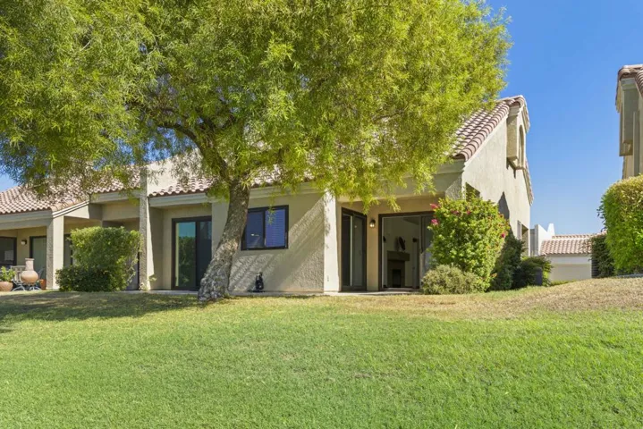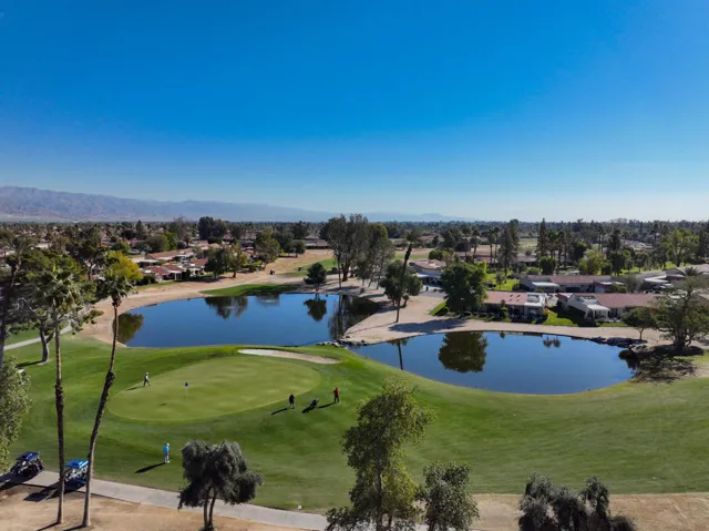 Welcome to Palm Desert Resort Country Club, where resort living meets spectacular views. This beautifully upgraded Augusta model sits on a prime lot overlooking the lake, mountains, and the 6th fairway–one of the community’s most scenic settings. The remodeled kitchen features granite counters, stainless appliances, and a refaced fireplace. The primary suite offers dual vanities, a skylight, soaking tub, and separate shower, while the guest bath includes a stylish walk-in shower. Tile flooring flows throughout the home, with carpet in the bedrooms, dual-pane windows, and newer A/C and furnace providing comfort year-round. Located in a 24-hour guard-gated community with 20 pools and spas, clubhouse, golf, tennis, and pickleball available–this home is move-in ready and ready to impress.