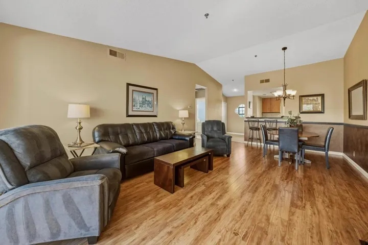 Welcome to 68035 Lakeland Drive, a stylish enclave nestled within Cathedral Canyon Country Club.This bright and cheerful condominium, perched on the second floor, is the perfect blend of comfort and style. Enter into a spacious open floor plan with gleaming easy-care flooring in the combined living/dining areas. An updated kitchen includes tile flooring, granite countertops, ample cabinetry, stainless gas range and refrigerator, and breakfast bar.Beyond the living room, a covered balcony provides a tranquil location to savor your morning coffee or al fresco dining. Enjoy beautiful neighborhood views of the surrounding landscape and dual sparkling pools. To the South and East, views of the mountains are nothing short of stunning!Enjoy the luxury of a spacious primary ensuite with an expanded closet, dual vanity, and direct patio access. On the opposite side of the condo, an additional bedroom and bathroom provide privacy and separation.Additional features include a laundry area with washer/dryer, a convenient outdoor storage closet, one covered parking space, and nearby guest parking.Cathedral Canyon Country Club features 450 acres of park-like environment including an 18-hole golf course and 10 tennis courts. Proximity to shopping, restaurants, Community Amphitheater, the CV Link, and the Agua Caliente Casino Cathedral City. The PSP International Airport and downtown Palm Springs are just minutes away.Perfect for your full-time residence, weekend getaways or seasonal living! HOA fee includes trash/recycling, cable, internet, pools/spas, security gates, exterior maintenance, and landscaping. Offered furnished.