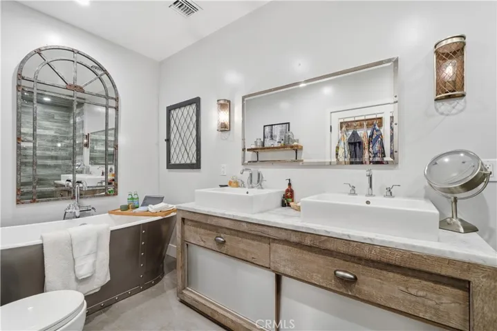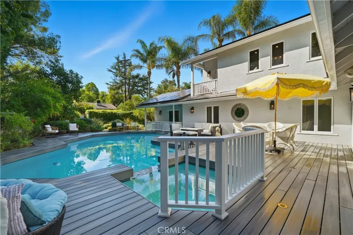 A One-of-a-Kind Walnut Acres Estate. Where Bespoke Design Meets California Living. Tucked in the highly coveted Walnut Acres of Woodland Hills—within one of the Valley’s best school districts—this extraordinary 3,866 sq fsq 4-bedroom, 5-bathroom residence is anything but cookie-cutter. Set on over a quarter-acre lot, the home offers a true backyard sanctuary, complete with award-winning, drought-tolerant landscaping, drip irrigation, and mature fruit trees including orange, pomegranate, lemon, and avocado. At the heart of the home, a stunning center open air courtyard built around a mature ash tree fills the interiors with natural light, creating a seamless connection between indoor and outdoor living. Every corner of the home reflects meticulous craftsmanship and refined design, from Restoration Hardware vanities to custom millwork and designer finishes throughout. All four bedrooms are ensuite, with the primary retreat featuring a steam shower, freestanding tub, and a hidden ceiling-mounted TV. The chef’s kitchen is a culinary masterpiece, equipped with top-of-the-line appliances, a custom pantry, and thoughtful designer details—perfect for both everyday living and entertaining. Entertain with ease in the custom game room and bar, complete with pool and ping pong tables, or step outside to the remastered pool, Trex deck, and fire pit under the stars. A detached art studio with a private garden offers a versatile space for creativity or relaxation, with potential for a 1,200 sq ft ADU (buyer to verify). Sustainability meets sophistication with an EV-ready garage and paid-off solar panels. This Walnut Acres estate isn’t just built—it’s crafted. Every room is a canvas, every detail a brushstroke. Experience the perfect blend of modern elegance, comfort, and functionality in one of Woodland Hills’ most desirable neighborhoods. Welcome to a home where California living is elevated to an art form.