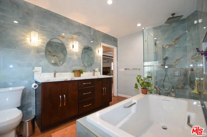 Sought after Jefferson park location. Historic West Adams . Nestled on a quiet residential street yet minutes from Santa Monica freeway. The main residence boasts 2 bedrooms plus den/office, 2 baths, great room plan, open and spacious, living/dining with fireplace. Hardwood floors t/out. Remodeled bright and open Chef’s kitchen. Primary Bedroom with remodeled bathroom, Soaking tub and glass enclosed shower. Laundry room with access to the huge backyard. Remodeled upstairs unit is 750 SF, Harwood floors t/out, one bed, plus den/study/storage, one bath, open kitchen with pantry, and a living+dining room. Permitted 773 SF storage/recreation room has a bedroom, and includes one car garage. Fabulous location with quick access to Downtown and Koreatown, hip new spots like the new Maydan market, Highly Likely, Cafe 5, Johnny’s Pastrami, Re/creation Cafe, etc.