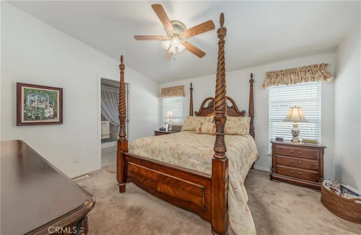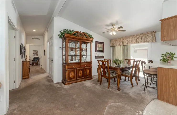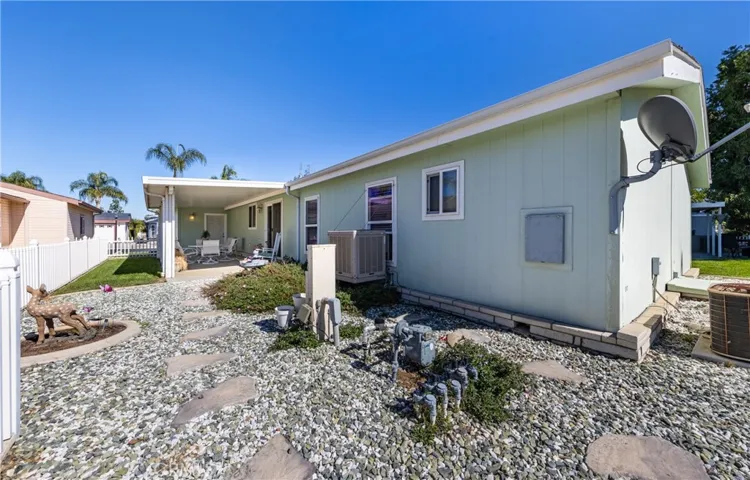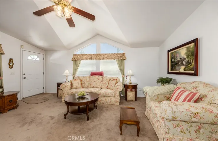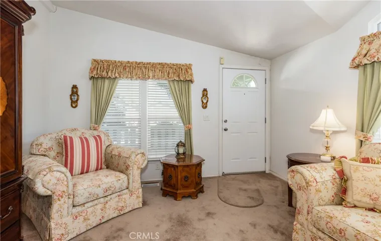 Lovely manufactured home located in the desired senior 55+ gated community of Foothills of Hemet, and as a bonus has an attached 2-car garage. Enjoy your mornings or evening on your porch overlooking your lush green yard & shade tree. Home has very spacious primary bedroom & bathroom w/step-in shower. Guest bedroom at the end of the hallway w/guest bathroom right next door to it. The third bedroom which has double door entry is being used as an office since it doesn’t have a closet. Kitchen is light & bright with lots of cabinetry that opens up to the dining and living room areas. Inside laundry room also has a pantry closet in it. Covered back patio for entertaining. The park is clean, quiet, gated and just plain awesome with amenities including 2 swimming pools, spa, pickleball courts, air-conditioned shuffle board court, exercise room, recreation hall w/kitchen, and rooms to enjoy billiards, cards, bingo, crafts & fun planned dinners or activities. Ask about the park’s RV parking area. Commuter friendly, and close to shopping & restaurants.