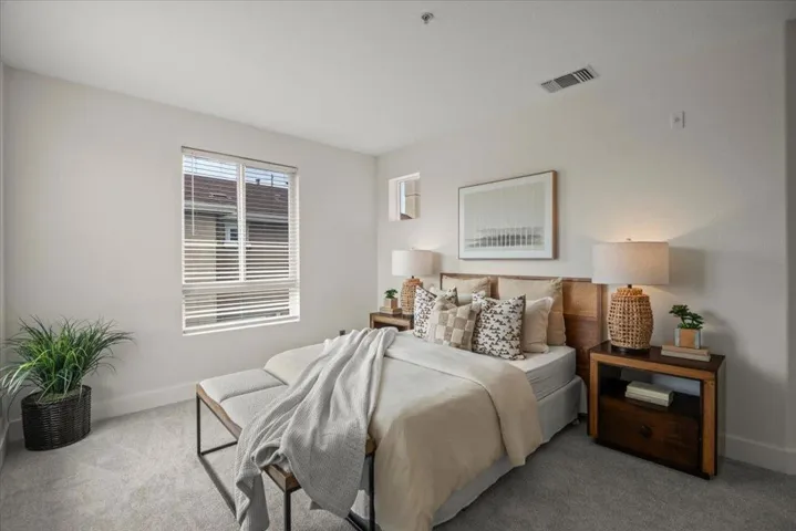 End-unit townhome in Lancaster Gate at the base of Communications Hill. Three ensuite bedrooms with walk-in closets, including a main-level suite and two additional suites on second level. The primary with vaulted ceilings, fireplace, and private balcony. Living room with tall ceilings, dining room and abundant light, tons of windows, and French door to balcony. Kitchen includes stainless appliances, gas cooktop, granite counters, casual eating area and glass sliding door to side entrance. Double pane windows, central A/C and 2 car attached garage. Steps from the renowned Comm Hill Grand Staircase, scenic walking and biking trails, and neighborhood parks with playgrounds. The community enhances your lifestyle with a sparkling pool, relaxing spa, and low HOA fees, while its prime location provides easy access to VTA Light Rail, Caltrain, downtown San Jose, shopping, and freeways 87, 85, 280, and 101.
