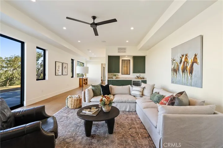 Experience refined living within the exclusive gates of Santa Ysabel Ranch Estates in this newly constructed 3,575± sq. ft. residence that exemplifies sophistication, craftsmanship, and timeless design. Thoughtfully designed across two stories, the home features 3 bedrooms, 4 bathrooms, and a 3-car garage, offering a seamless blend of luxury and functionality. The interior showcases limestone flooring, quartzite countertops, and custom tile work throughout, with high-end finishes and fixtures that elevate every space. The gourmet kitchen is a culinary masterpiece, featuring a Thermador refrigerator, microwave drawer, wine fridge, and custom cabinetry complemented by a striking tile backsplash. The adjoining living room centers around a beautiful fireplace, creating a warm and inviting space for gathering. Entertain or unwind with ease, enhanced by a built-in audio system that extends through the kitchen, living room, office, and back patio. Outdoor living is equally inviting, with a covered deck and private front and backyard courtyards offering peaceful views of the surrounding natural landscape. Additional highlights include a temperature-controlled wine cellar, epoxy-finished garage floors, and an efficient solar system for sustainable living.