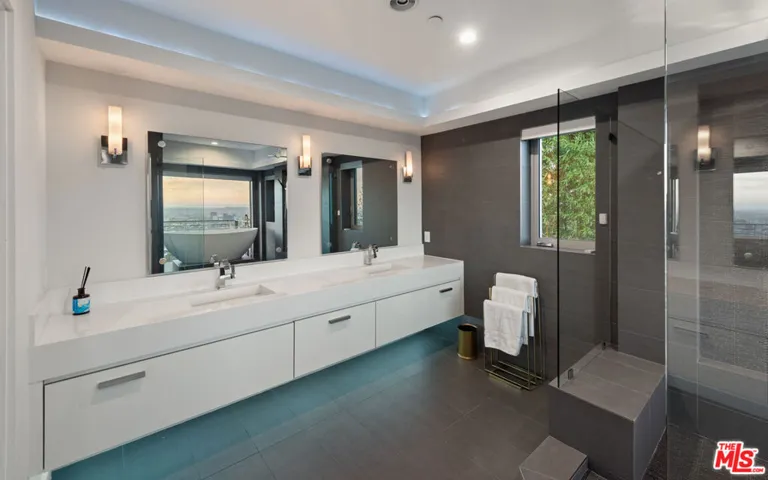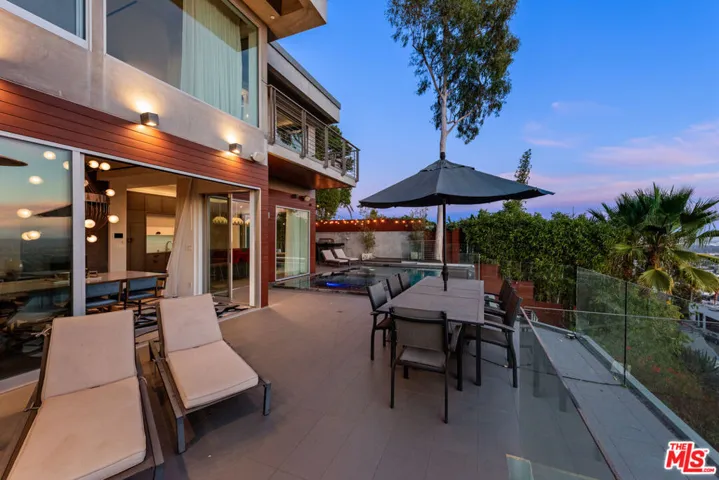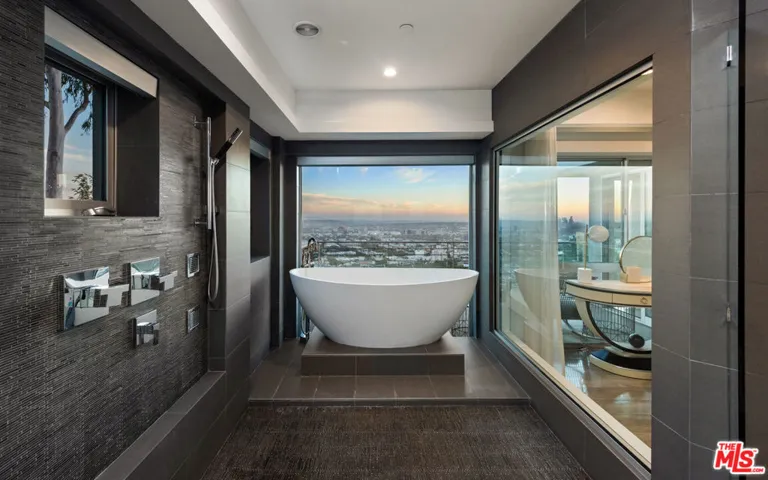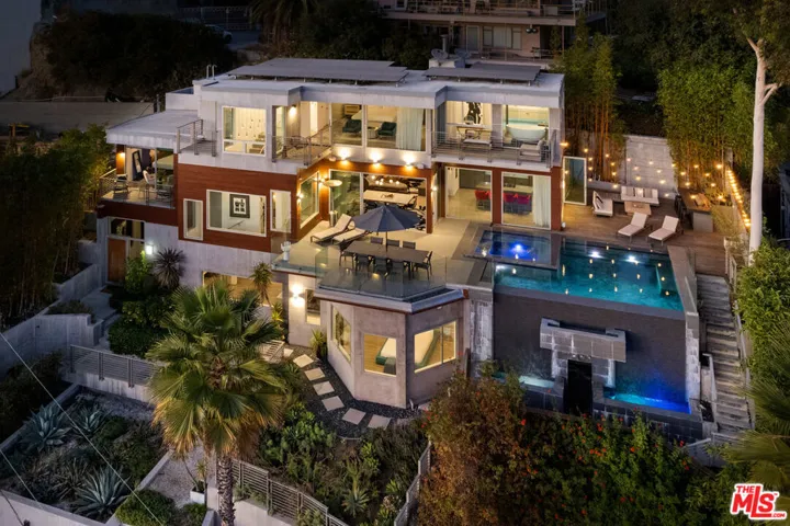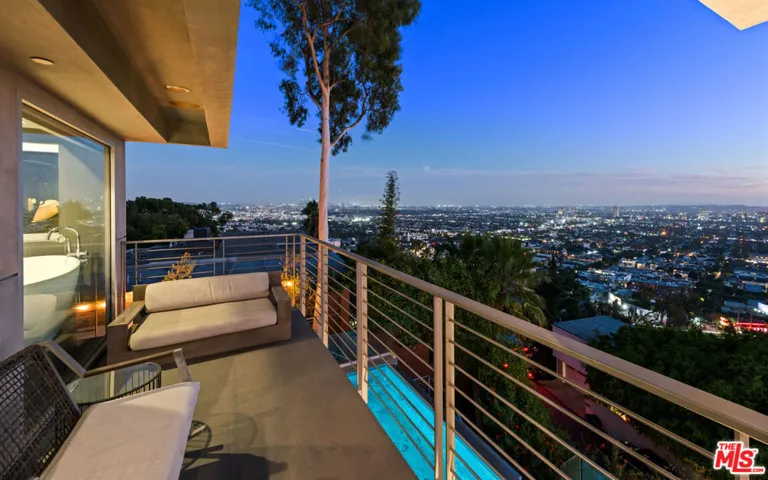 A Hollywood Hills Masterpiece with Unrivaled Views and Unmatched Luxury. Designed by Irving Philips, this architectural gem is perched on a private cul-de-sac above the iconic Chateau Marmont, offering sweeping vistas from Downtown LA to the Pacific Ocean. Seamlessly blending modern design with the natural beauty of its surroundings, this residence epitomizes California indoor-outdoor living with retractable doors, expansive terraces, and a stunning infinity-edge pool, where stunningsunsets are yours every evening from arguably the best seat in the Hills.The main level features an open-concept layout, ideal for entertaining, with a sleek outdoor kitchen,meticulously landscaped grounds, and a waterfall focal point. Upstairs, the luxurious primary suite occupies the entire top floor, complete with a captivating private balcony,spa-like bathroom, and panoramic views that redefine tranquility. Two additional en-suite bedrooms provide privacy and comfort for family or guests. State-of-the-art amenities include an iPad-controlled Smart Home system, Nest climate control, and comprehensive security. Designed for relaxation and entertainment, this property embodies Hollywood Hills glamour with every conceivable amenity at your fingertips.