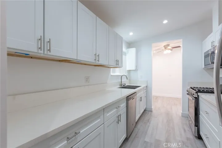 Discover this beautifully renovated 3-bedroom, 2-bathroom single family home offering approximately 1,100 square feet of stylish and spacious living. Located in a desirable neighborhood close to top-rated schools and shopping centers, it combines convenience with comfort. This home offers a beautiful layout with brand new laminate flooring, recessed lighting, and energy-efficient split AC units in every room, ensuring optimal comfort year-round. The modern kitchen is a chef’s dream, showcasing sleek quartz countertops, brand new cabinets and brand-new stainless steel appliances. Additional highlights include a separate laundry room and ample storage space, both conveniently located in the back of the property. Also enjoy privacy and outdoor living with dedicated front and back yards, perfect for relaxing or entertaining.