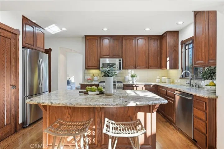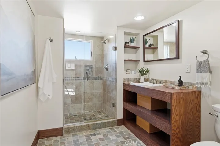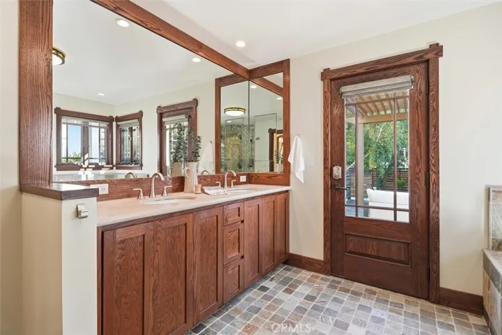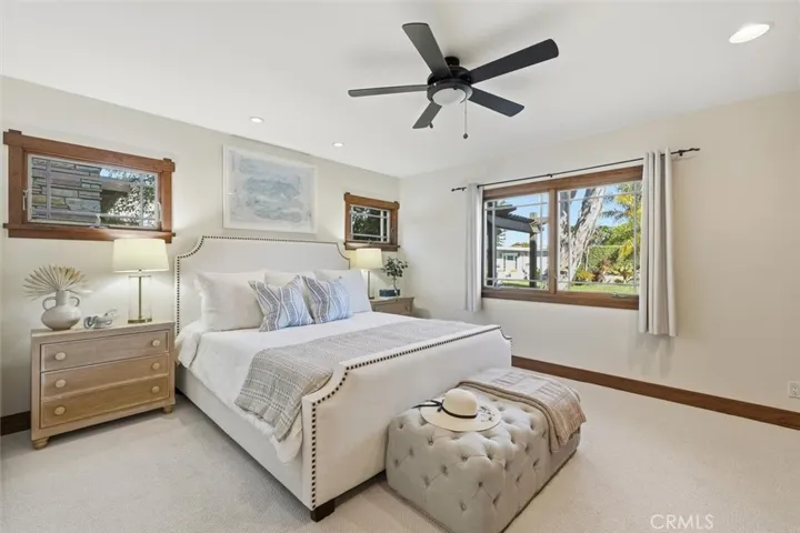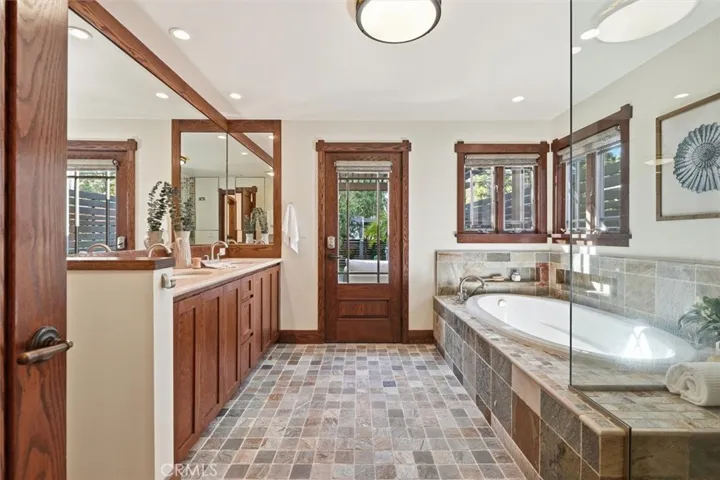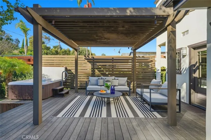 Enter this modern craftsman redesign with soaring ceilings for that spacious feeling. The natural sunlight fills all the rooms of this architecturally distinctive home. There are authentic Andersen Art Glass Panel windows and solid oak doors throughout. The open family room and updated kitchen provide that relaxed living space for the family. There are wood floors, beam ceilings, and a fireplace in the family room. The primary suite is large with a huge walk-in closet and is located on the first level. The primary bath has a soaking tub and a tumbled tile shower. Also, there is a door for easy access to the spa and back patio. The upstairs bedrooms and loft are large with cathedral beam ceilings and views of the neighborhood surrounding green treetops. The loft is perfect for your home office, hobby room, or kids’ playroom. The rear yard is sheltered for outdoor entertaining with a beautiful hardwood deck (Mangeris, Red Balau with clips – not nails). The pergola provides comfort shade while BBQing or enjoying the outdoors, and still more yard for playing. This home backs up to the PV walking trail and is a short walk to Riviera Elementary. Perfectly located in the upper Riviera.