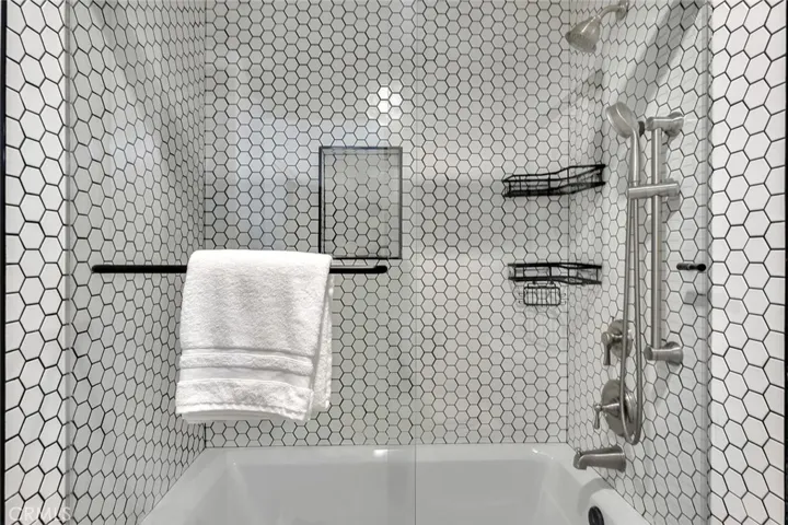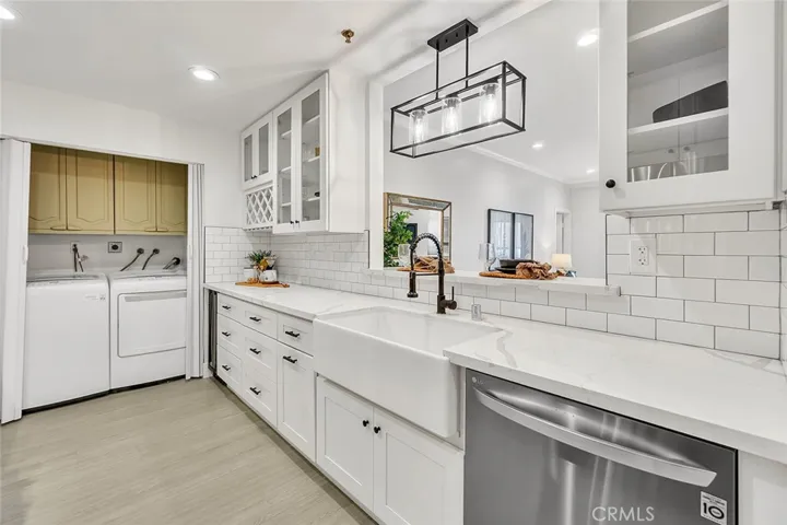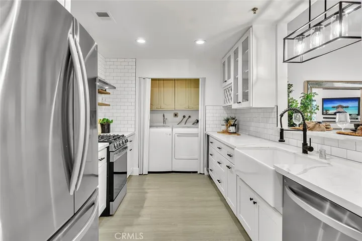 Charming Garden Grove Condo! Located in the desirable gated community of Greenbrier Terrace, this single-level 2-bedroom, 2-bathroom home offers 1,057 square feet of comfortable living space and is truly move-in ready. Enjoy access to resort-style amenities, including a heated pool and spa. Step inside to find smooth-finish walls, LED recessed lighting, and a bright, open layout that seamlessly connects the dining and family rooms. The spacious kitchen is thoughtfully appointed with a white subway tile backsplash, quartz countertops, newer stainless steel appliances, a gas stove, deep pantry, and a pass-through window to the living area—perfect for entertaining. A laundry area with an electric dryer is conveniently located just off the kitchen. The primary bedroom is generous in size and features a large walk-in closet, double-sink vanity, and a spacious shower area. The second bedroom is ideally situated on the opposite side of the condo, adjacent to the updated hall bathroom, which includes a new, larger vanity. Additional highlights include central HVAC, private covered parking, and a detached 2-car garage with extra storage. The home also offers a high level of privacy, both indoors and out, and includes a private patio for relaxing or entertaining. Don’t miss this opportunity to own a beautifully maintained home in a tranquil community, close to local shopping, dining, and freeway access!