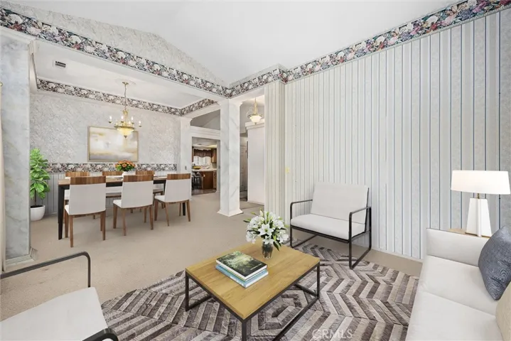 Located on a desirable cul-de-sac, this 3-bedroom, 2-bath, 1,604 sq. ft. home features a thoughtful layout that blends formal and casual living spaces, offering the flexibility to entertain guests in one area while enjoying everyday comfort in the other. The front living and dining areas showcase vaulted ceilings, large windows, and abundant natural light, creating an airy and open feel. The family room is anchored by a cozy brick fireplace and flows seamlessly into the kitchen, where a spacious breakfast bar and plenty of cabinetry provide ample room for meal prep and gatherings. Sliding glass doors open to the backyard, extending the living space outdoors. With its thoughtful layout and multiple areas to entertain or relax, this home offers a flexible design to fit your lifestyle.