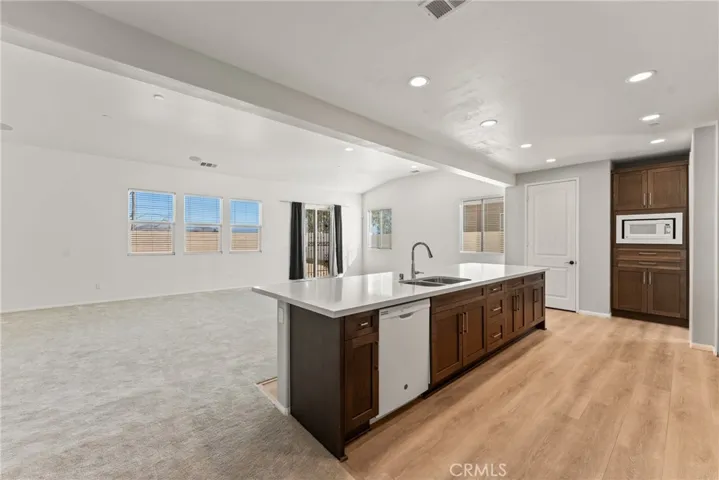 Welcome to this stunning, move-in-ready home built in 2018! Nestled on a quiet rear corner street in a highly desirable neighborhood, this spacious residence offers 4 bedrooms, 3 bathrooms, and an impressive 2,739 sq. ft. of living space. Step inside and you’ll immediately notice the high ceilings and open layout that create a bright, airy atmosphere. To the left of the entryway are two comfortable bedrooms, a full bathroom, and a separate laundry room. The modern kitchen features recessed lighting, a large center island with additional seating, a pantry, and ample cabinet space for all your storage needs. The kitchen seamlessly opens to the spacious living and dining areas, perfect for entertaining or family gatherings. The primary suite, located at the back of the home, offers privacy and comfort with a dual vanity, soaking tub, and separate shower. Upstairs, you’ll find a large loft-style living area, along with an additional bedroom and bathroom — ideal for guests, teens, or multi-generational living. Additional highlights include an energy-efficient tankless water heater and an attached two-car garage. Enjoy the convenience of being close to parks, trails, the Big League Dreams Baseball Park, a water park, and more, with easy access to the 215 freeway. Don’t miss your chance to make this beautiful, well-maintained home your own — this is a must-see!
