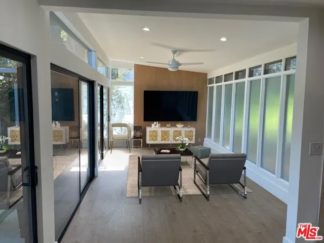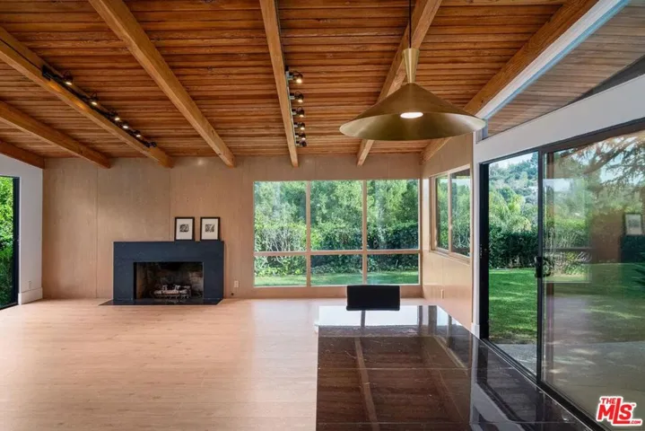 Mid century Gated 4 bedroom 4 bath, fully renovated home on a very private street off of Mulholland. Lots of light and beautiful canyon views from almost every room in this home. Private and serene with Zen court yard with pond. Large grassy yard with BBQ area. Open floor plan includes living room, dining room, and gourmet kitchen. Studio garage. Also for sale.