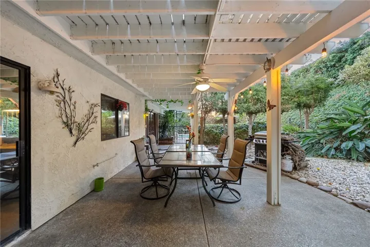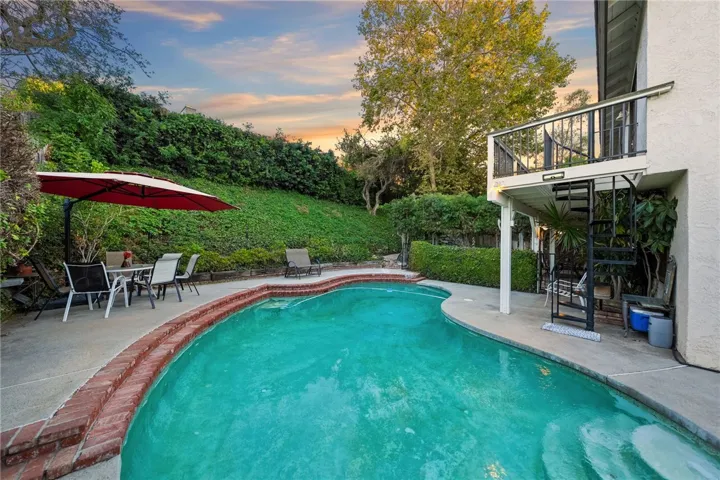 Welcome to this inviting Canyon Crest home — where comfort, privacy, and outdoor beauty come together. This spacious 2-story home offers 5 bedrooms, 3 full baths, and a 3-car garage, giving you plenty of room for family and guests. Step inside to cathedral ceilings and a light, airy feel. The living room and family room both boast a fireplace, perfect for cooler evenings, while ceiling fans throughout keep the home comfortable all year. The kitchen is bright and welcoming with classic tile counters and generous cabinet space – great for casual meals or entertaining friends. Upstairs, the primary suite is a peaceful retreat with a large walk-in closet, a roomy bath, and access to an upstairs balcony where you can enjoy beautiful views and evening breezes. Outside, the backyard feels like your own private escape. Lush landscaping, mature trees, and fruit trees surround a sparkling swimming pool and outdoor fireplace — a perfect spot to relax or host gatherings. The greenery and thoughtful design create a true sense of privacy and serenity rarely found in the city. With its functional layout, resort-style outdoor space, and picturesque views, this Canyon Crest home offers a wonderful blend of comfort, charm, and everyday enjoyment.