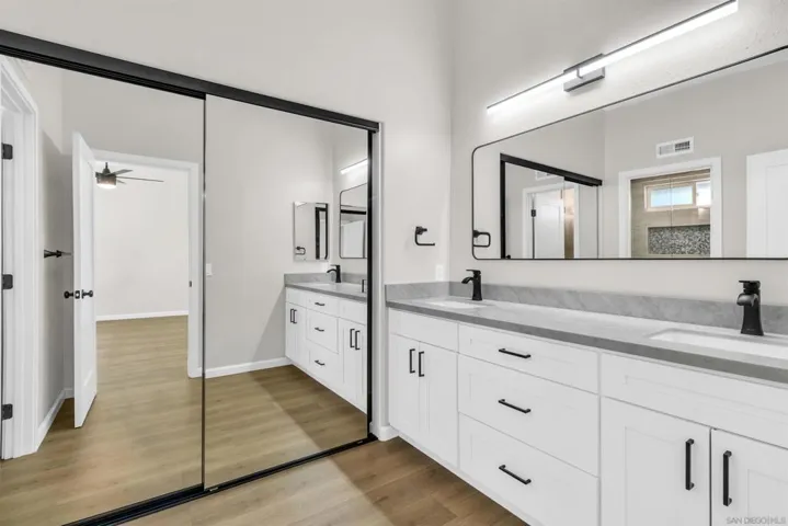 Beautiful, newly renovated 4 bed/2.5 bath home in quiet, gated Mira Mesa Neighborhood. NEW HVAC, NEW windows, NEW laminate flooring throughout with carpeted stairs. NEW kitchen and baths with Quartz countertops stainless steel appliances. Walking distance to parks, schools and restaurants. The community offers front yard maintenance and guest parking. Don’t miss this turn-key home! ** NOTE: Refrigerator was damaged in transit and will be installed prior to COE. It has been virtually staged for photos. Model information available upon request.
