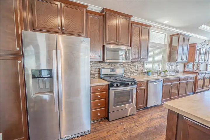 Situated in the desirable gated community of Vista Del Monte in Monrovia, this inviting 55+ home offers comfort, charm, and convenience in a peaceful setting. The spacious wraparound deck is perfect for relaxing outdoors or entertaining guests, while the kitchen features sleek stainless steel appliances that add a touch of modern style and functionality.
