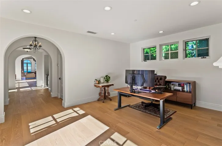 Spanning ~4,000 Sq Ft, the residence offers 3 en-suite bedrooms, an executive office, and 3.5 baths – all framed by soaring 13 foot ceilings and an abundance of natural light. Every finish has been curated with precision, blending timeless sophistication with modern functionality. A custom mix of Richard Marshall hardwood and Walker Zanger stone flooring, EuroDesign cabinetry, and bespoke millwork throughout.
