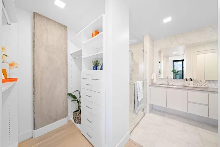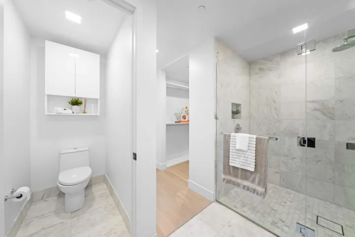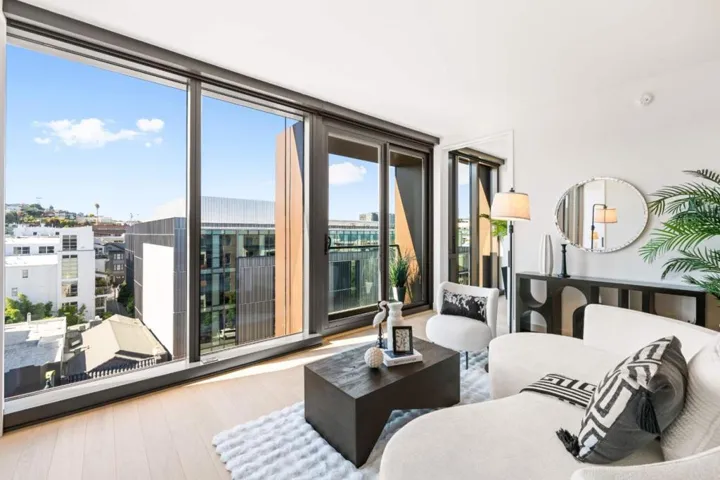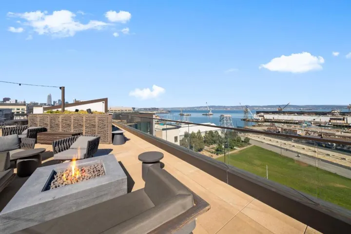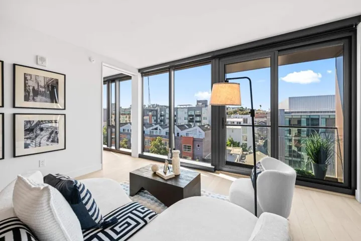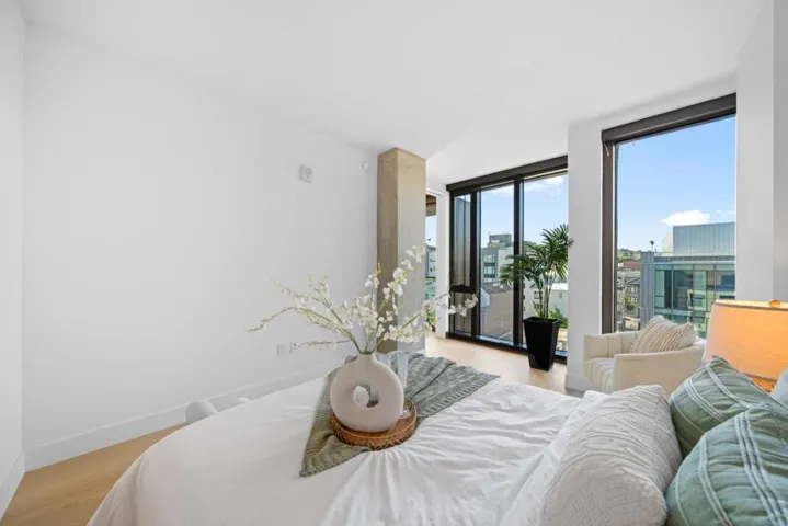Designed by Woods Bagot, this modern top-floor 2-bedroom, 2-bathroom condo features valet parking, offering Waterfront living in the heart of Dogpatch. The open-concept floor plan features expansive wall to wall windows and a balcony, bathing the space with natural light. European oak hardwood flooring adds warmth and elegance. Beautiful open kitchen features gorgeous marble countertops, custom Italian cabinets, upscale integrated Miele appliances and a spacious island with seating. The primary suite offers a large custom walk-in closet and a luxurious ensuite bath with dual marble vanities, Kohler fixtures and a glass-enclosed shower with marble walls. The second bedroom is generously sized, featuring a walk-in closet. The hallway bathroom boasts a gorgeous soaking tub. Inside laundry with Miele washer and dryer. Community amenities boast a landscaped center courtyard, private gym, rooftop terrace, pet spa, residence lounge and co-working space. This unit comes with one assigned parking space, two designated bike storage areas, and one owned storage space. Great location with close proximity to Crane Cove Park, coffee shops, popular restaurants, Dogpatch Boulders, Caltrain, Chase Center, Restoration Hardware and the future Pier 70 development, and more!
