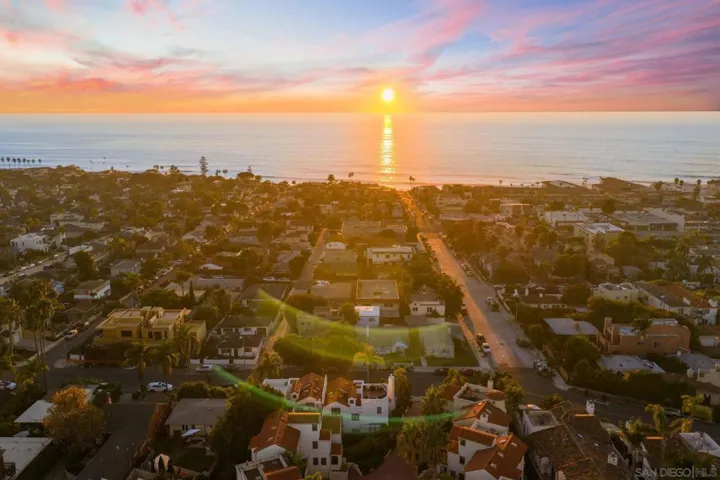 Experience stunning OCEAN and SUNSET views with timeless charm quintessential La Jolla living just minutes from the iconic WindnSea Beach, The Village, and La Jolla Cove. This beautifully updated 3-bedroom, 3-bath coastal retreat offers 2,058sf of comfortable elegance with the home features hardwood floors, granite countertops, and new carpet throughout. French doors from the dining room and kitchen open to capture ocean breezes, creating an effortless indoor-outdoor flow perfect for entertaining. The main level includes a bedroom and full bath, with additional French doors leading to a serene private patio surrounded by lush greenery. Upstairs, the spacious primary suite showcases ocean views and its own set of French doors, filling the room with natural light and coastal air. The spa-inspired bath features a standalone soaking tub and separate shower for ultimate relaxation. End your day on the rooftop deck, where panoramic sunset views remind you why La Jolla remains one of the most desirable coastal destinations in the world.