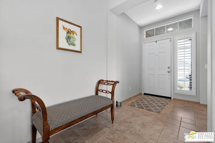 Welcome Home! This beautifully maintained residence is located in the highly sought-after Four Seasons 55+ gated community. Perfectly positioned on a premium corner lot, it offers extra outdoor space ideal for entertaining or simply relaxing and taking in the views. Plus, paid solar keeps energy costs low, making this home as efficient as it is inviting. Once inside a bright, open-concept kitchen and family room with soaring ceilings, abundant natural light, and custom built-ins that add both charm and functionality. Previous owner remodeled the original front room which lends to a versatile third room that currently serves as an office with built-ins, but it easily transitions into a guest room, den, or hobby space tailored to your lifestyle along with a formal dining room. The spacious primary suite is a true retreat with peaceful garden views, a spa-like en-suite bath featuring a double vanity, and a generous walk-in closet. Living in Four Seasons means enjoying resort-style amenities every day: sparkling pools and spas, a state-of-the-art fitness center, tennis and pickleball courts, scenic walking and biking trails close to the CV link , and a vibrant social calendar. And with Frontier fiber optic internet included in the HOA, staying connected is effortless. All this just minutes from Palm Springs shopping, dining, golf, and entertainment.