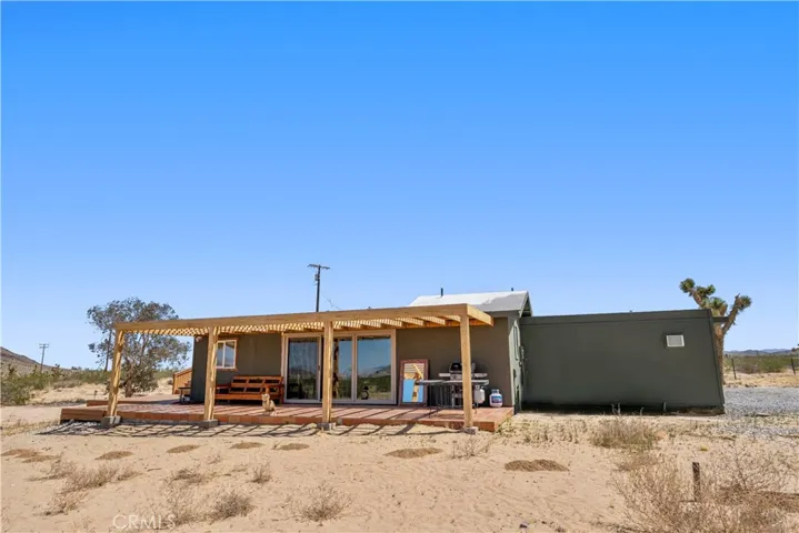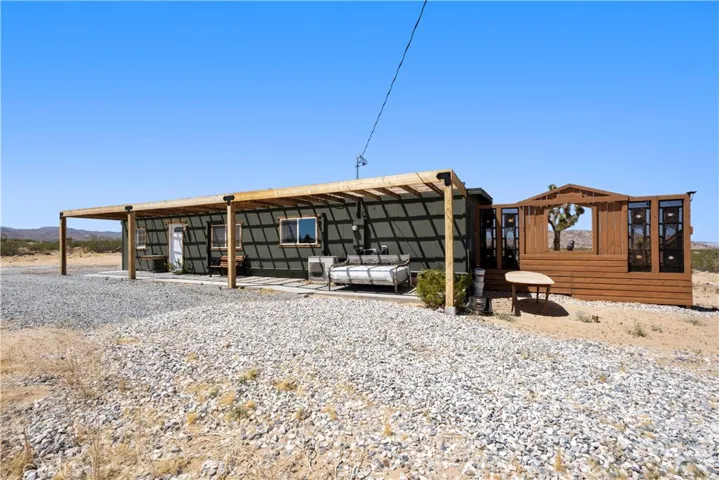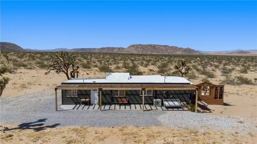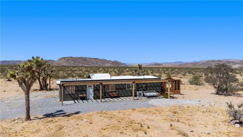 Step into your own private desert paradise with this unique, two bedroom (plus bonus room), one bath, fully-fenced five-acre property, offering peace, privacy, and endless natural beauty. Nestled in the heart of Landers, this charming home, provided fully furnished, provides direct access to miles of government-owned land — a rare opportunity to live next to an unspoiled, forever-wild setting. Hike nearby Goat Mountain or venture out to legendary Giant Rock from right outside your door. Just a short stroll in the other direction, you’ll find the Integratron, offering rejuvenating sound baths and a tranquil escape for the mind and body. Back at home, greet guests on the welcoming front porch or retreat to the private, hidden back porch — the perfect place to relax and take in the sweeping desert views and the seemingly never-ending wilderness that stretches out beyond your property. A brand new viewing deck and spa area are perfect for watching the sunset and stargazing at night. You will love watching the sunrise from the Saltillo-tiled patio. Originally built in 1958 and thoughtfully expanded over the years, this home has been recently updated and remodeled with modern touches. The spacious layout offers plenty of room for relaxation and enjoyment, whether you’re entertaining or seeking solitude. With its unparalleled access to nature, modern conveniences, and boundless potential for customization, this is Landers at its finest. Whether you’re looking for an investment property (home is successful short-term rental), remote desert getaway or a place to settle into the tranquility of the desert, this home has it all.